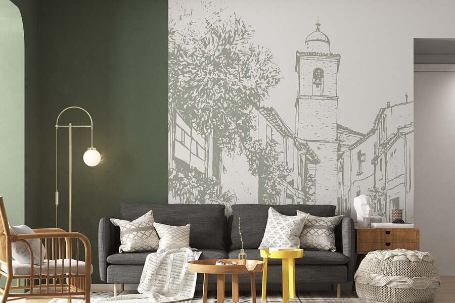 Transforme o seu espaço com este encantador mural de parede, um esboço encantador de uma rua pitoresca com uma bela torre sineira. É como entrar numa aldeia serena sempre que passa por ela. Imagine-se a beber café num recanto acolhedor, com as suas paredes cheias de vibrações pacíficas. Os contornos suaves dos edifícios e a vegetação luxuriante trazem uma sensação de calma, perfeita para descontrair após um longo dia. Este mural prepara o cenário para devaneios de viagens e aventuras. Deixe-o inspirar histórias e trazer calor a qualquer divisão – porque quem não quer uma pitada de capricho na sua vida?