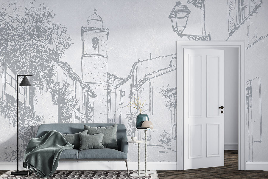 Transforme qualquer divisão com este mural encantador, que apresenta uma cena de rua esboçada adornada com uma torre sineira. Imagine-se a passear por este caminho sinuoso, talvez com uma chávena quente de algo acolhedor na mão. As linhas suaves e os pormenores delicados convidam ao relaxamento, tornando-o perfeito para uma sala de estar ou um recanto tranquilo onde os devaneios podem flutuar. É como entrar num livro de histórias onde cada olhar desperta um novo pensamento ou memória. Quer seja para iniciar uma conversa ou apenas um pano de fundo calmante, este mural acrescenta um toque único que sussurra charme e conforto. Perfeito para aqueles que apreciam um pouco de capricho no seu espaço!