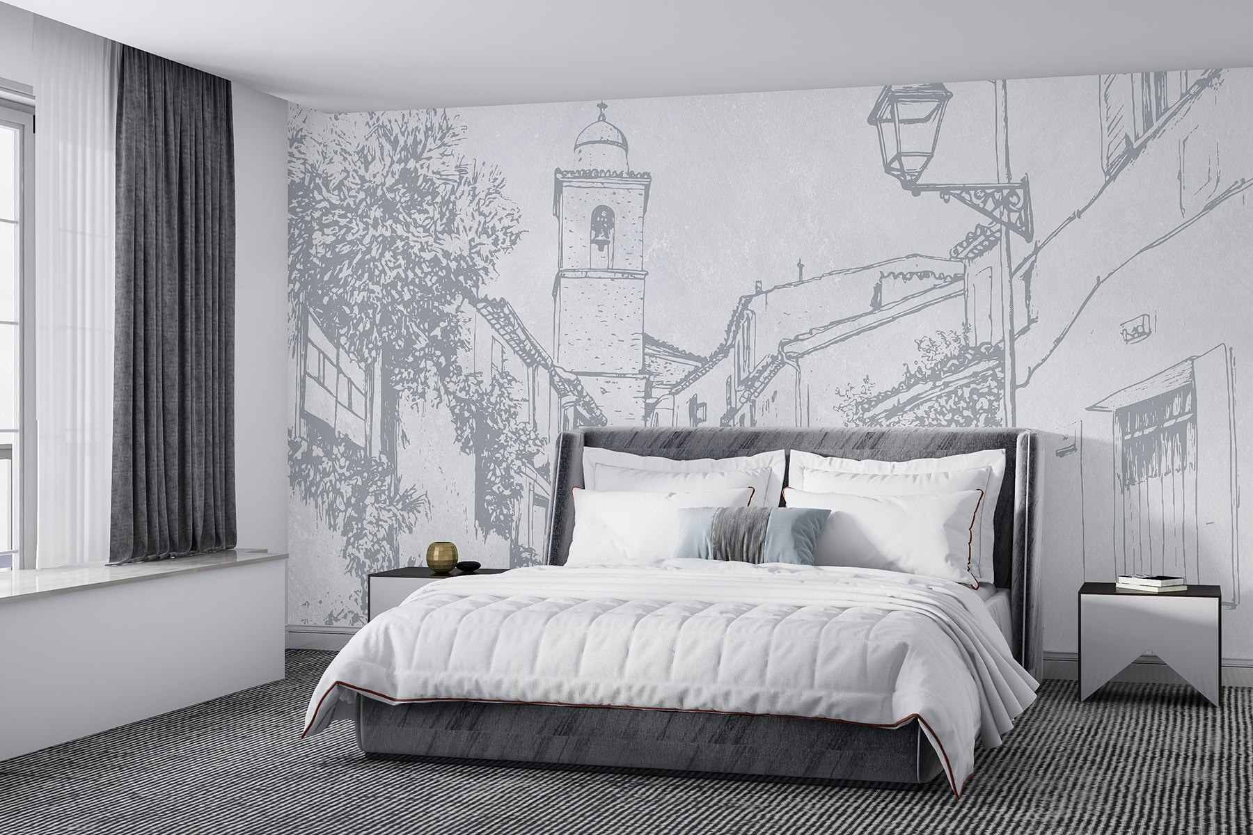 Transforme qualquer divisão com este mural encantador, que apresenta uma cena de rua esboçada adornada com uma torre sineira. Imagine-se a passear por este caminho sinuoso, talvez com uma chávena quente de algo acolhedor na mão. As linhas suaves e os pormenores delicados convidam ao relaxamento, tornando-o perfeito para uma sala de estar ou um recanto tranquilo onde os devaneios podem flutuar. É como entrar num livro de histórias onde cada olhar desperta um novo pensamento ou memória. Quer seja para iniciar uma conversa ou apenas um pano de fundo calmante, este mural acrescenta um toque único que sussurra charme e conforto. Perfeito para aqueles que apreciam um pouco de capricho no seu espaço!
