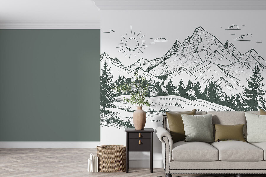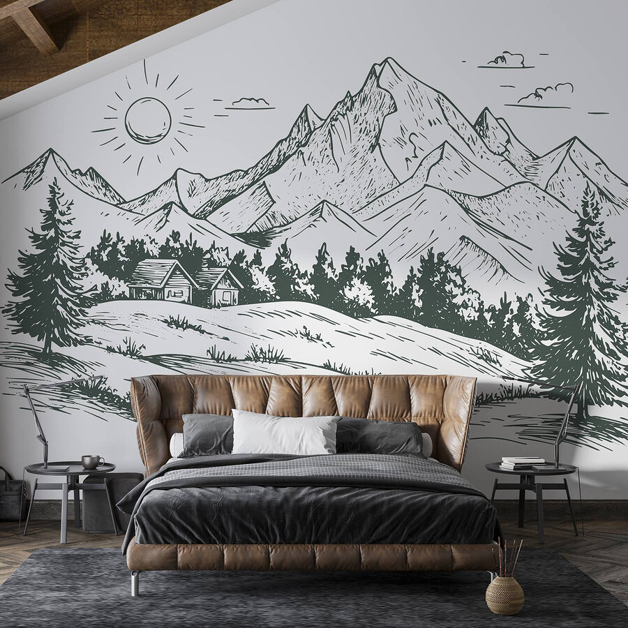 Transforme uma parede em branco numa fuga serena com este mural cativante que apresenta uma casa encantadora aninhada entre grandes montanhas e árvores exuberantes. Imagine acordar com uma suave lembrança da beleza da natureza, mesmo na sua sala de estar ou escritório em casa. As linhas nítidas e os tons de terra criam uma vibração tranquila, perfeita para descontrair após um longo dia. É como trazer um pouco do ar livre para dentro de casa, sem os mosquitos. Quer se trate de um recanto de leitura acolhedor ou de um espaço convidativo para os amigos, este mural define o ambiente. Quem não gostaria de se sentir um pouco mais zen no seu dia a dia?
