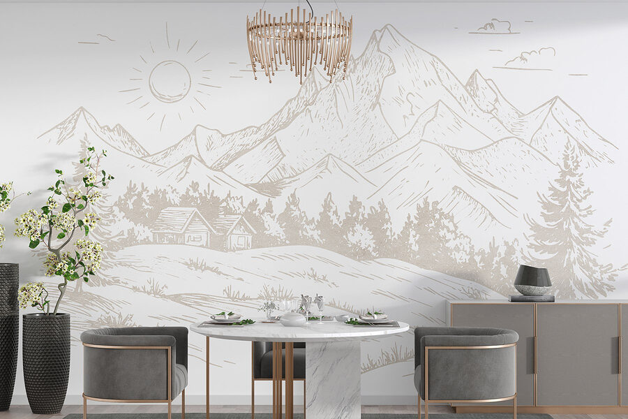 Transforme qualquer espaço com este encantador mural de parede que traz uma paisagem serena diretamente para a sua casa. Imagine majestosas montanhas altas, ladeadas por árvores exuberantes e colinas suaves. É como ter uma mini-fuga sem sair do sofá! Imagine bebericar o café da manhã enquanto contempla esta vista serena; até os pássaros podem ficar com um pouco de inveja. Além disso, as linhas suaves e os tons de terra convidam a um ambiente acolhedor. Perfeito para uma cabana rústica ou um espaço moderno e chique, este mural sussurra calma e acrescenta um toque de beleza da natureza onde quer que vá.