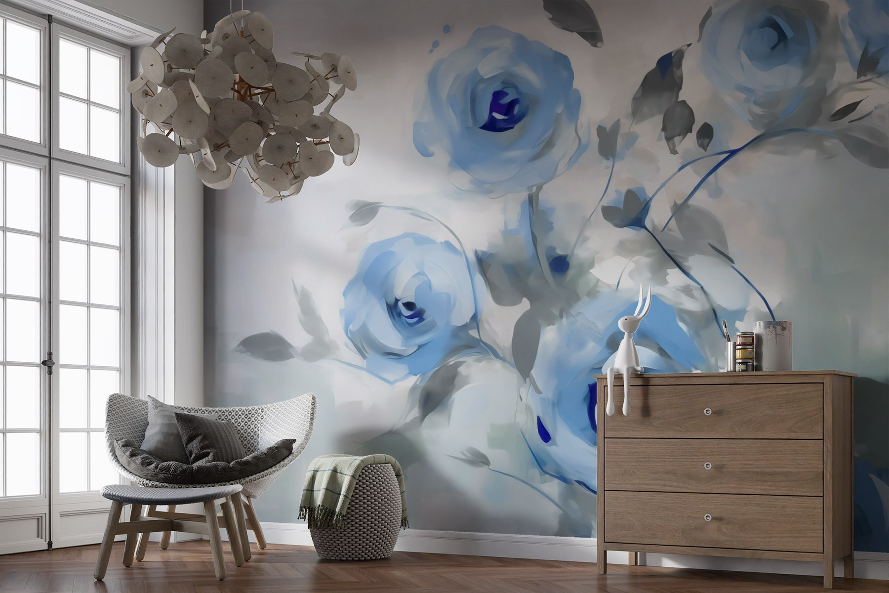 Transforme as suas paredes num jardim de sonho com este deslumbrante mural de flores azuis. Imagine entrar numa sala onde lindas flores em tons suaves de azul dançam pela parede, iluminando o espaço sem esforço. É como ter um pedaço de natureza mesmo em casa, sem precisar de ter um polegar verde. Os amigos podem até pensar que transformou a sua sala de estar numa loja de flores!