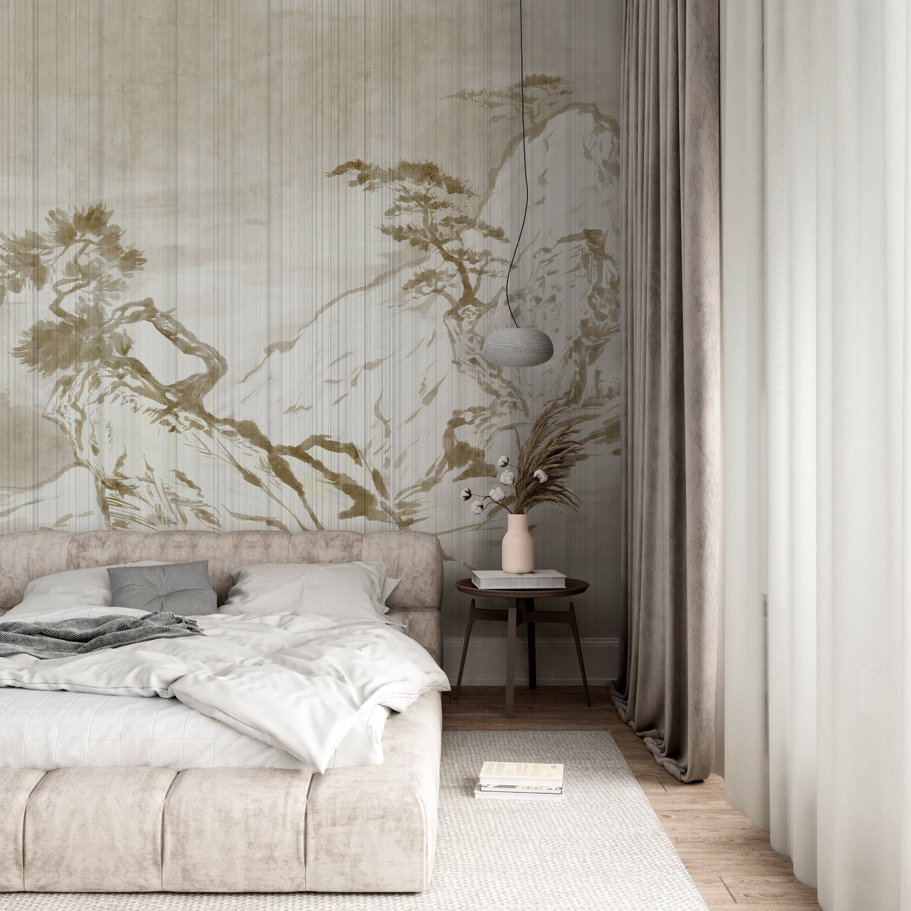 Transforme qualquer espaço num retiro acolhedor com este deslumbrante mural de parede com montanhas suaves e árvores graciosas. Imagine entrar numa sala que parece uma fuga serena para a natureza – sem necessidade de botas de caminhada! Os tons suaves e terrosos evocam uma sensação de calma, perfeita para aquelas manhãs tranquilas com café ou relaxamento noturno após um longo dia.