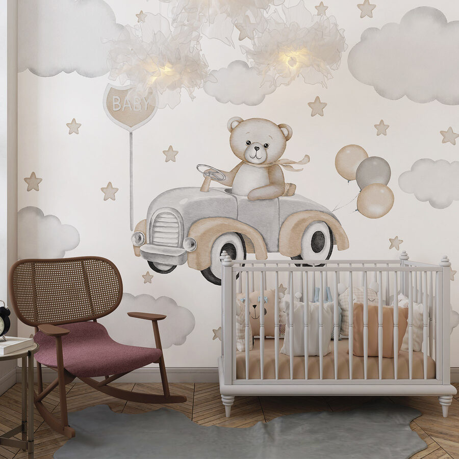 Dê um toque de alegria ao quarto de qualquer pequenino com este mural de parede encantador com um ursinho de peluche numa aventura encantadora! Imagine o amigo de peluche ao volante, com um balão na mão, a navegar por entre nuvens suaves e estrelas cintilantes. É o tipo de cena que torna a hora de dormir um pouco mais mágica e sonhadora. Perfeito para dar asas à imaginação, este mural transforma qualquer espaço numa escapadela extravagante. É como ter um copiloto amigável que vigia alegremente o seu filho, criando um retiro acolhedor cheio de maravilhas e risos. É o toque certo para o quarto de uma filha ou para um quarto de bebé – divertido mas calmante, exatamente como a infância deve ser!
