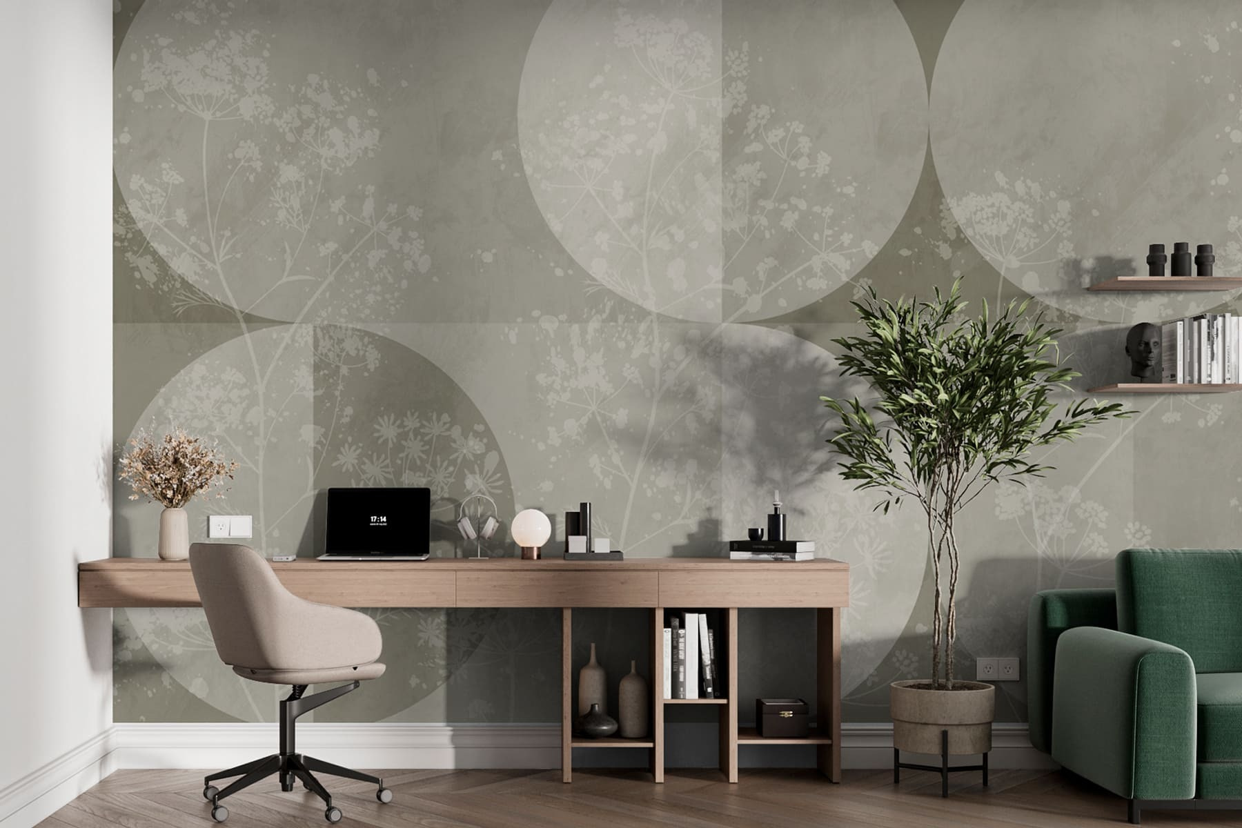 Transforme o seu espaço com este mural cativante que mistura sem esforço uma paleta de cinzento e branco, com círculos delicados e flores divertidas. Imagine-se a acordar com este pano de fundo suave e sonhador que, de alguma forma, faz com que cada chávena de café pareça uma ocasião elegante. É como ter um jardim sereno ao ar livre na sua sala de estar. O efeito de aguarela acrescenta um toque de capricho, como se cada flor estivesse a balançar suavemente com uma brisa suave. Perfeito para aquele recanto acolhedor ou para um espaço de trabalho criativo, traz uma vibração serena que diz simplesmente: “Relaxe, você tem isto”. Quer esteja a receber amigos ou a desfrutar de momentos a solo, este mural acrescenta uma atmosfera animadora – como um abraço caloroso nas suas paredes.