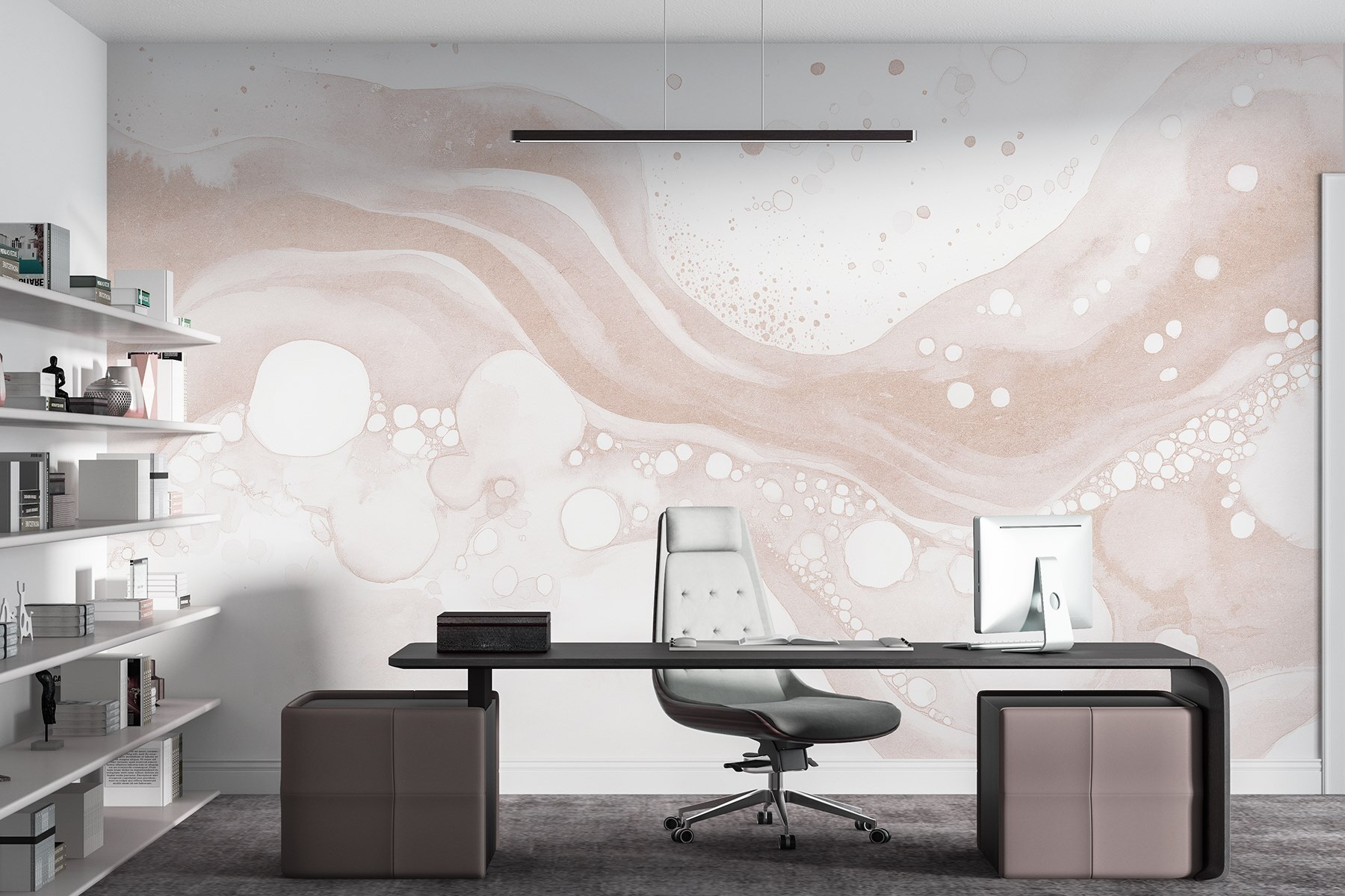 Transforme um espaço monótono numa fuga serena com este deslumbrante mural de parede, “Líquido branco e castanho com círculos e pontos brancos”. Imagine acordar com tons suaves e rodopiantes que dançam na sua parede, criando uma vibração suave que convida ao relaxamento. Os pontos únicos e as formas fluidas imitam um toque de criatividade – perfeito para uma sala de estar acolhedora ou um quarto de sonho.