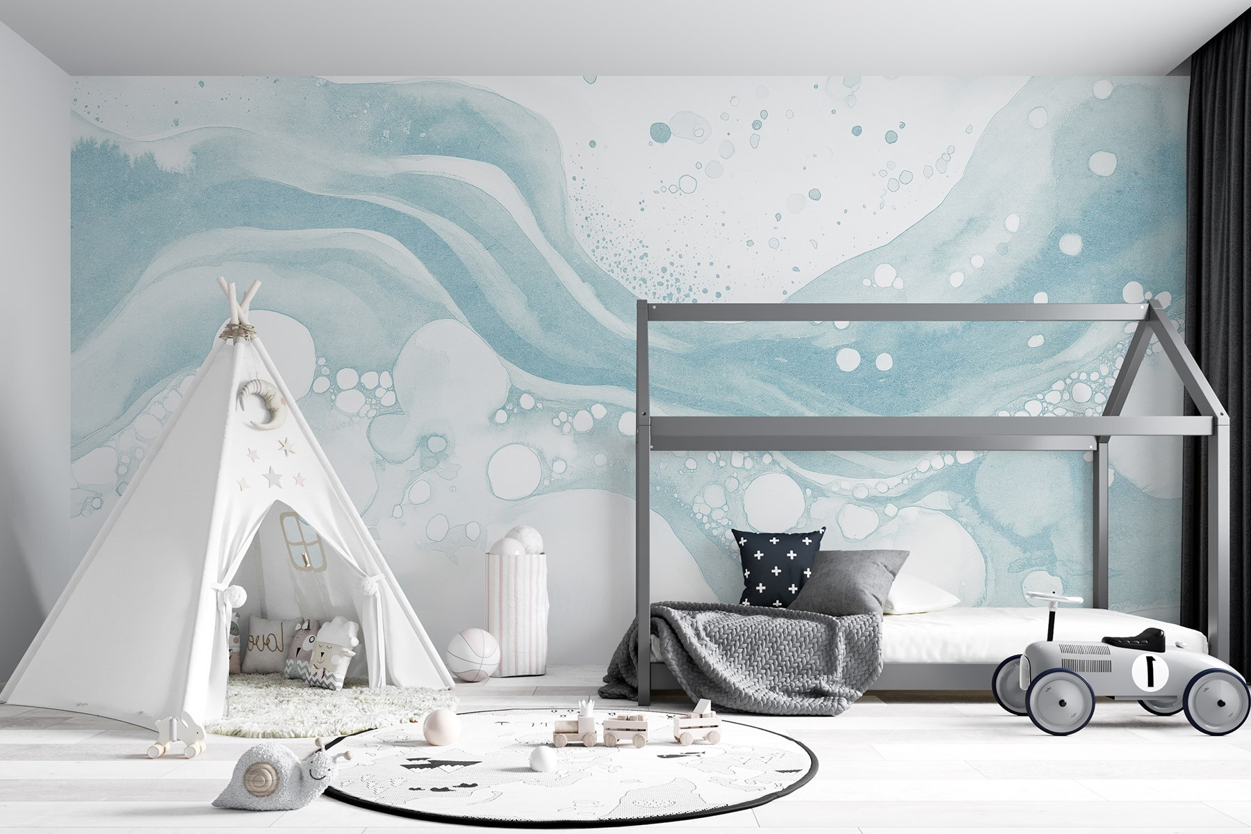 Transforme o seu espaço com este mural de parede, uma mistura sonhadora de aguarela branca e azul que é como uma suave brisa do mar capturada em tela. Imagine-o a iluminar um recanto de leitura acolhedor ou a acrescentar um toque de calma a uma sala de estar movimentada. As curvas suaves e as bolhas divertidas convidam a sonhar acordados com dias de praia preguiçosos enquanto acalmam os sentidos. É quase como se o mural sussurrasse: “Respire fundo, relaxe”. Perfeito para os amantes da natureza ou para qualquer pessoa que deseje um toque de serenidade na sua casa. Imagine-se a beber chá enquanto este mural ilumina as suas paredes – quem não gostaria de ter essa vibração?