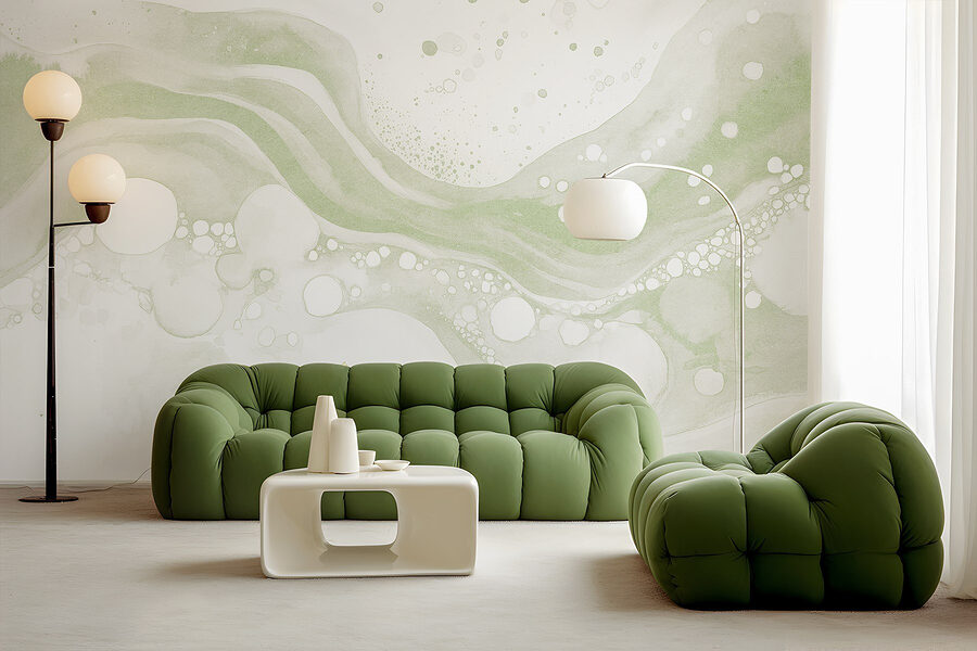 Transforme o seu espaço com este deslumbrante mural de aguarela, misturando verdes suaves e brancos tranquilos. Imagine-se a entrar numa divisão onde as paredes sussurram relaxamento, desfrutando do suave fluxo de cores. É como uma lufada de ar fresco – perfeito para uma sala de estar acolhedora ou para um recanto de leitura tranquilo. Os convidados farão, sem dúvida, uma pausa, talvez até se inclinem para admirar as curvas suaves e os pontos divertidos. Não se trata apenas de um mural; suscita conversas e convida a sonhar acordados. Dê às suas paredes um pouco de amor com esta obra de arte calmante que se sente como uma fuga artística.