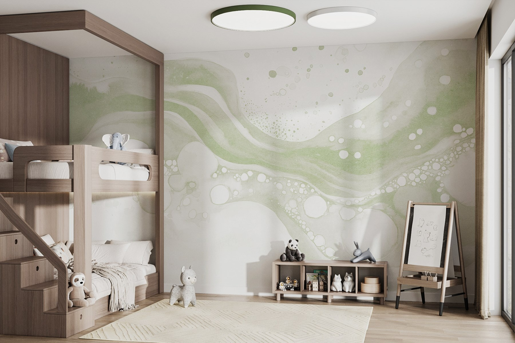 Transforme o seu espaço com este deslumbrante mural de aguarela, misturando verdes suaves e brancos tranquilos. Imagine-se a entrar numa divisão onde as paredes sussurram relaxamento, desfrutando do suave fluxo de cores. É como uma lufada de ar fresco – perfeito para uma sala de estar acolhedora ou para um recanto de leitura tranquilo. Os convidados farão, sem dúvida, uma pausa, talvez até se inclinem para admirar as curvas suaves e os pontos divertidos. Não se trata apenas de um mural; suscita conversas e convida a sonhar acordados. Dê às suas paredes um pouco de amor com esta obra de arte calmante que se sente como uma fuga artística.