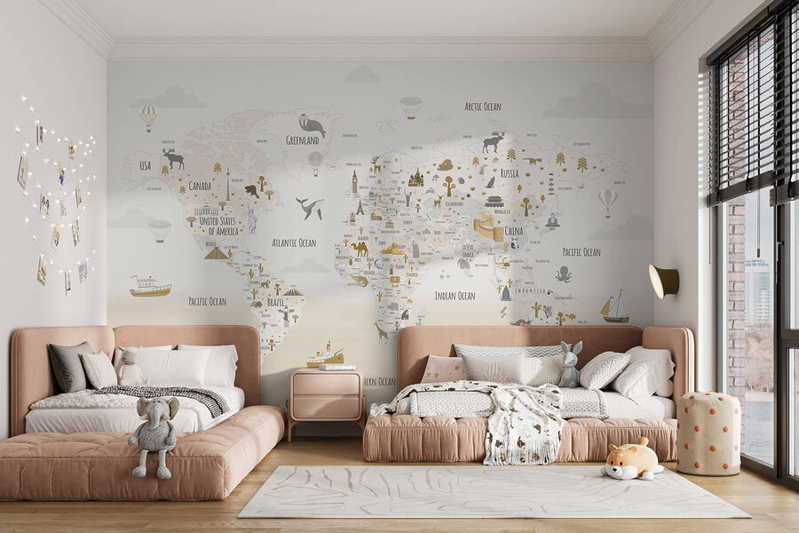 Transforme qualquer espaço numa pequena zona de aventura com o Mapa do Mundo Papel de parede. Imagine só – crianças sentadas de pernas cruzadas, com os olhos a brilhar, a traçar os dedos pelos continentes e oceanos. Este mural não é apenas arte; é um convite para explorar e aprender. Com ilustrações divertidas de animais e pontos de referência emblemáticos, desperta a curiosidade e dá asas à imaginação. Quer se trate de um quarto de criança ou de um recanto de estudo, acrescenta um toque de capricho que faz com que cada olhar pareça uma mini-fuga. Quem sabe? Talvez inspire alguns futuros viajantes do mundo! Ilumine essas paredes e deixe o desejo de viajar começar!