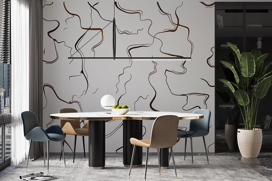 A escolha do material depende da divisão em que planeia utilizar o papel de parede. Para quartos de crianças e quartos de dormir, recomenda-se o material Economy para uma melhor circulação do ar. Para casas de banho e cozinhas, o Vinil Premium é a escolha ideal devido à sua camada extra de verniz, que repele a humidade, a sujidade e é fácil de limpar. Para outras divisões, sugerimos o Vinil ou o Vinil Premium, uma vez que oferecem uma combinação de elevada resistência ao desgaste e saturação de cores vivas.