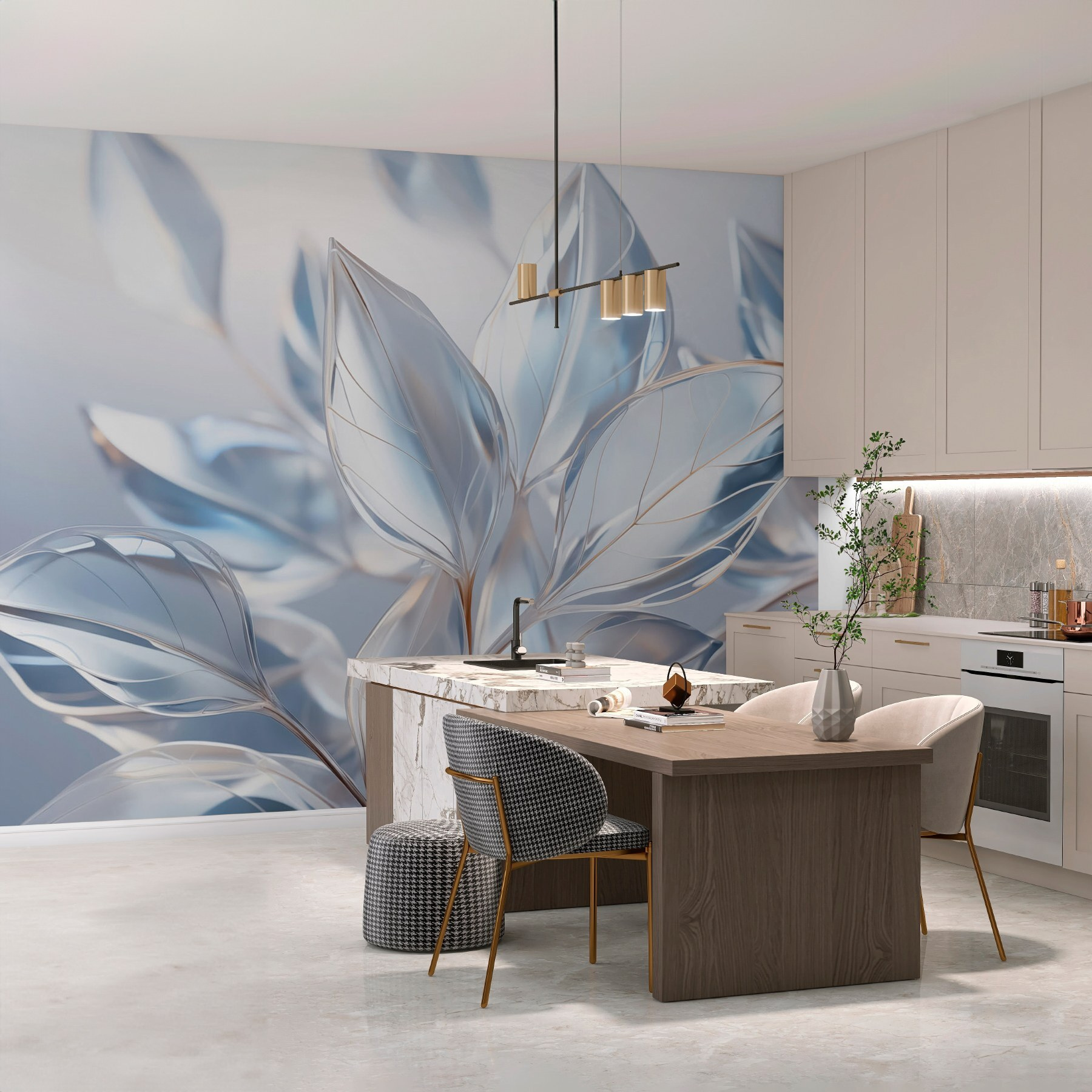Papel de parede Desenho delicado de folhas translúcidas Papel de parede Desenho delicado de folhas translúcidas