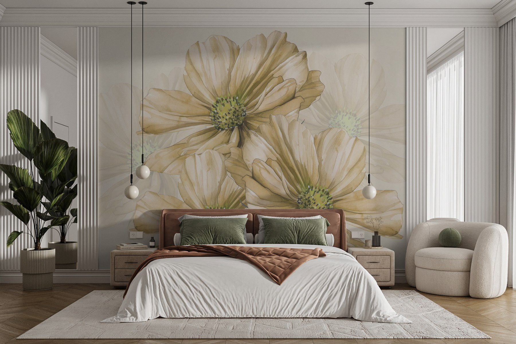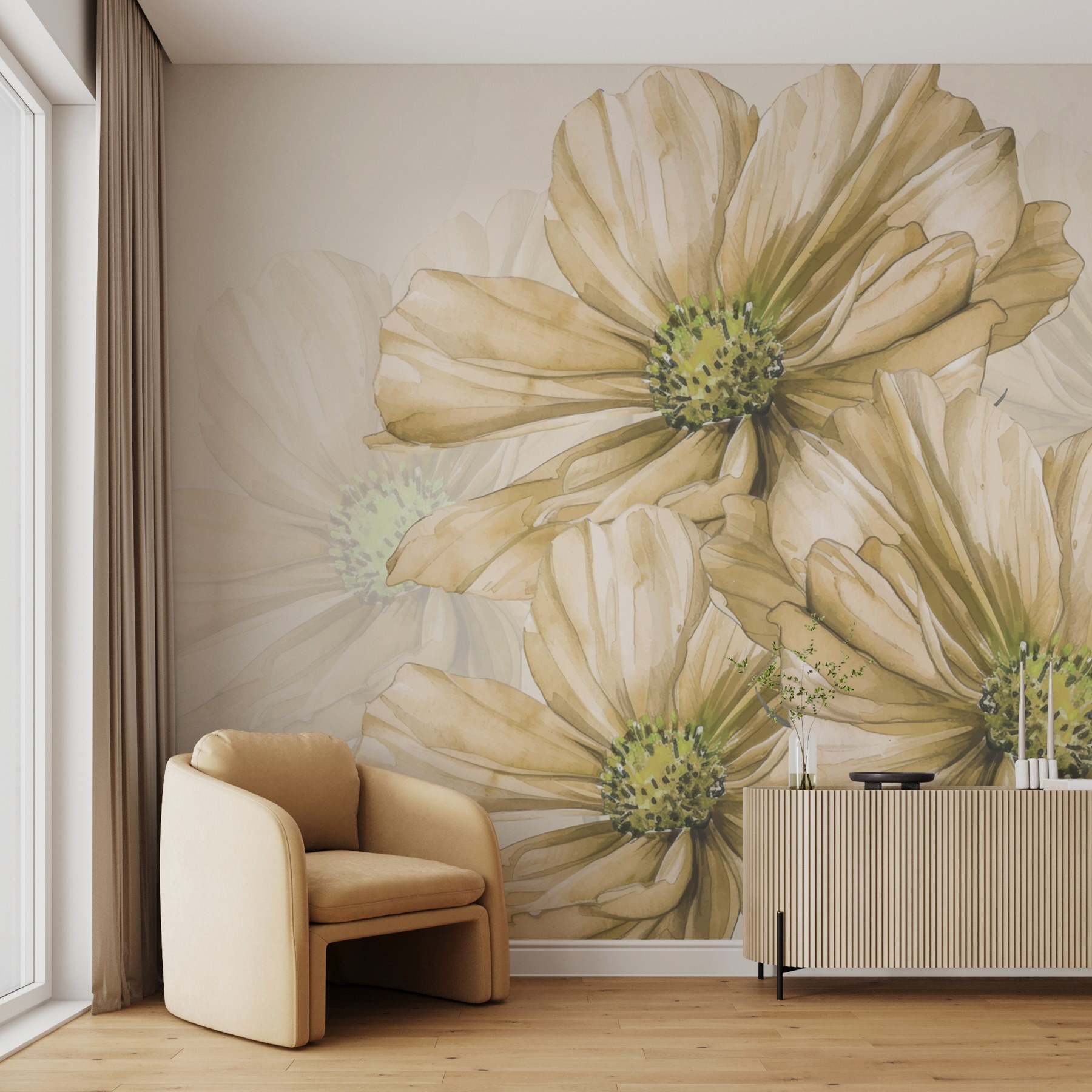 Transforme qualquer espaço num retiro sereno com este mural de parede que apresenta um cativante grupo de flores. Imagine estas delicadas flores com os seus encantadores centros verdes a balançar suavemente numa brisa – é como ter um jardim fresco em sua casa. Ideal para os amantes da natureza ou para quem deseja um toque de calma, esta aguarela transporta-o para dias de sol e vibrações quentes. Imagine-se a beber chá enquanto olha para este mural, deixando a sua imaginação passear por campos de sonhos. É mais do que uma decoração, é um convite para descontrair e respirar. Abrace a beleza e deixe-a iluminar o seu dia.