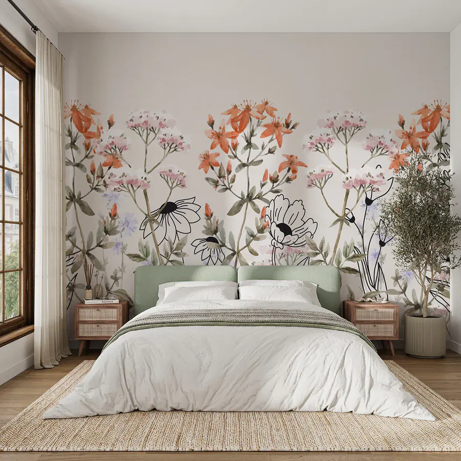 Imagine entrar numa sala que parece um jardim tranquilo, mesmo nos dias mais agitados. Este mural, “Flores delicadas num cenário sereno”, dá vida a um ramo de flores vibrantes que parecem quase balançar ao sabor da brisa. As cores suaves e as linhas fluidas dão-lhe a sensação de estar rodeado pelo melhor da natureza. Perfeita para uma sala de estar acolhedora ou para um quarto calmo, sussurra relaxamento como uma boa chávena de chá após um longo dia. Imagine-se a enrolar-se com um livro, com estas flores a animá-lo e talvez até a convidar uma ou duas borboletas… ou pelo menos o olhar curioso do seu gato! Quem diria que uma parede poderia ser tão convidativa?