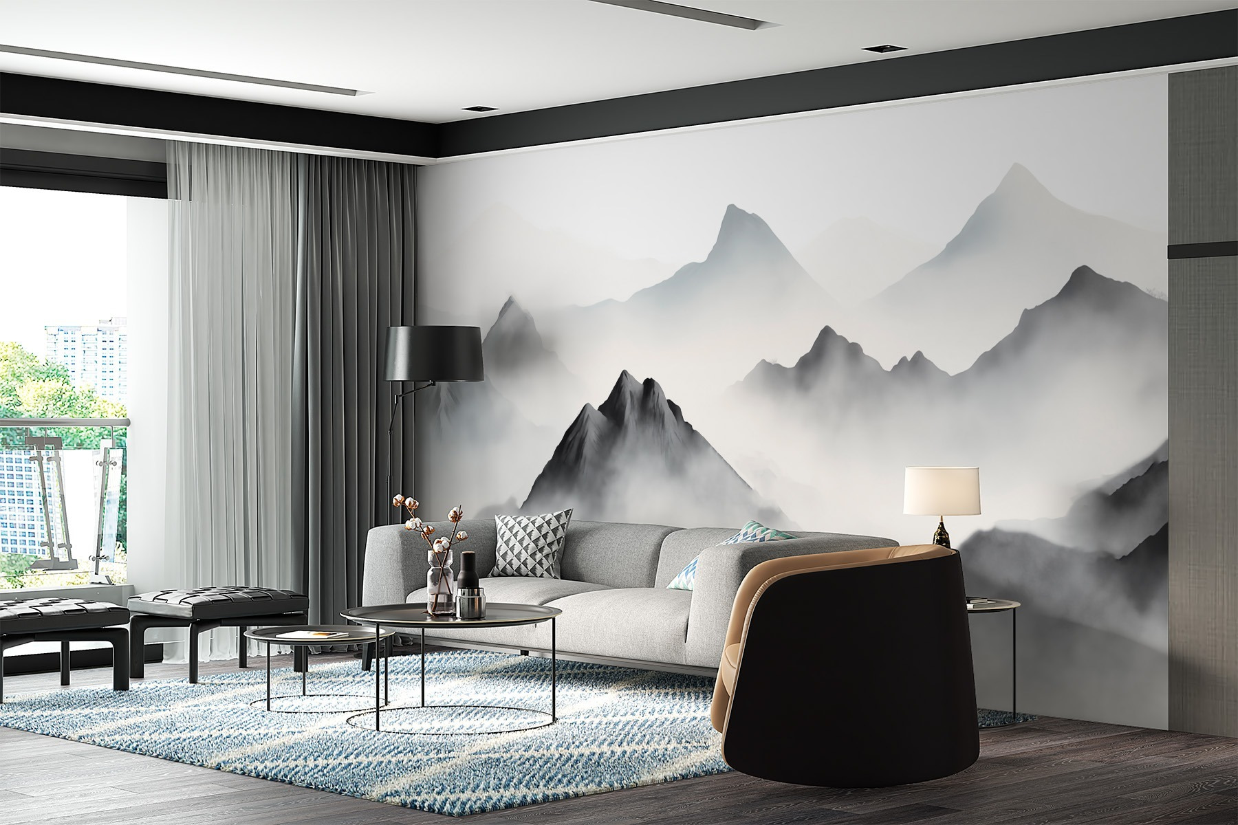 Traga as vibrações serenas da natureza para dentro de casa com este deslumbrante mural de parede com uma majestosa cadeia de montanhas envolta em nuvens suaves. Imagine bebericar o seu café da manhã enquanto contempla as subtis camadas de picos, onde o nevoeiro sussurra segredos de aventuras ainda por vir. É como ter o seu próprio pedaço de tranquilidade, perfeito para criar aquele recanto acolhedor na sala de estar ou para dar carácter a um espaço de trabalho a partir de casa. O contraste suave entre o preto e o branco convida à calma, tornando-o numa solução natural para qualquer casa. Quer inspire pensamentos profundos ou simplesmente ilumine o seu dia, este mural será certamente um ponto de partida para uma conversa.