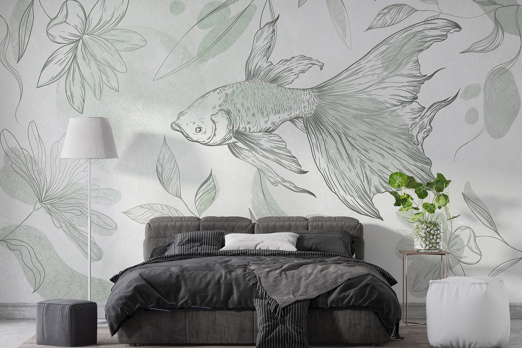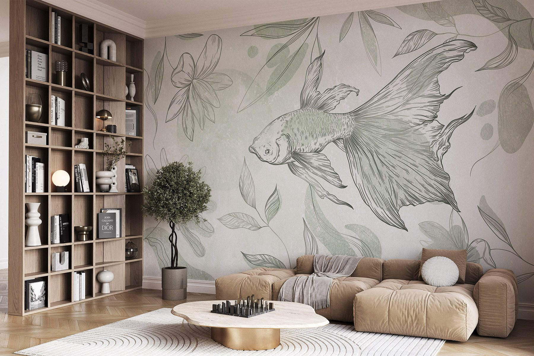 Transforme qualquer divisão numa fuga serena com este mural que apresenta peixes delicados e plantas extravagantes. É como trazer uma fatia da natureza para dentro de casa, onde as cores suaves dançam nas paredes e convidam a uma sensação de calma. Imagine-se a beber chá enquanto olha para aqueles peixes graciosos, quase como se estivessem a nadar nos seus devaneios. É perfeito para um recanto de leitura acolhedor ou para aquela parede em branco que está a implorar por alguma vida. Este mural não se limita a decorar; inspira uma vibração pacífica, fazendo de cada olhar um pequeno refúgio. A sério, quem diria que a decoração da casa poderia parecer um aquário tranquilo?