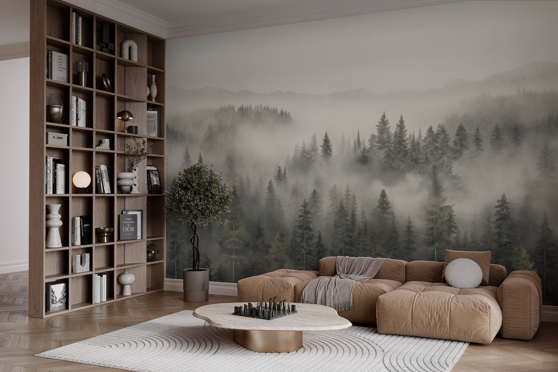 Transforme o seu espaço numa escapadela de sonho com este deslumbrante mural de uma floresta envolta em nevoeiro e montanhas. É como entrar num bosque tranquilo onde o tempo pára. Imagine-se a beber o seu café da manhã enquanto olha para estas árvores serenas, sentindo o abraço da natureza a envolvê-lo. Há algo de mágico na névoa que suaviza tudo, não é? Perfeito para salas de estar, escritórios ou até mesmo cantos de café, este mural cria uma vibração pacífica. Deixe que as suas paredes contem histórias de caminhadas matinais e brisas sussurradas, transformando qualquer divisão num retiro acolhedor.