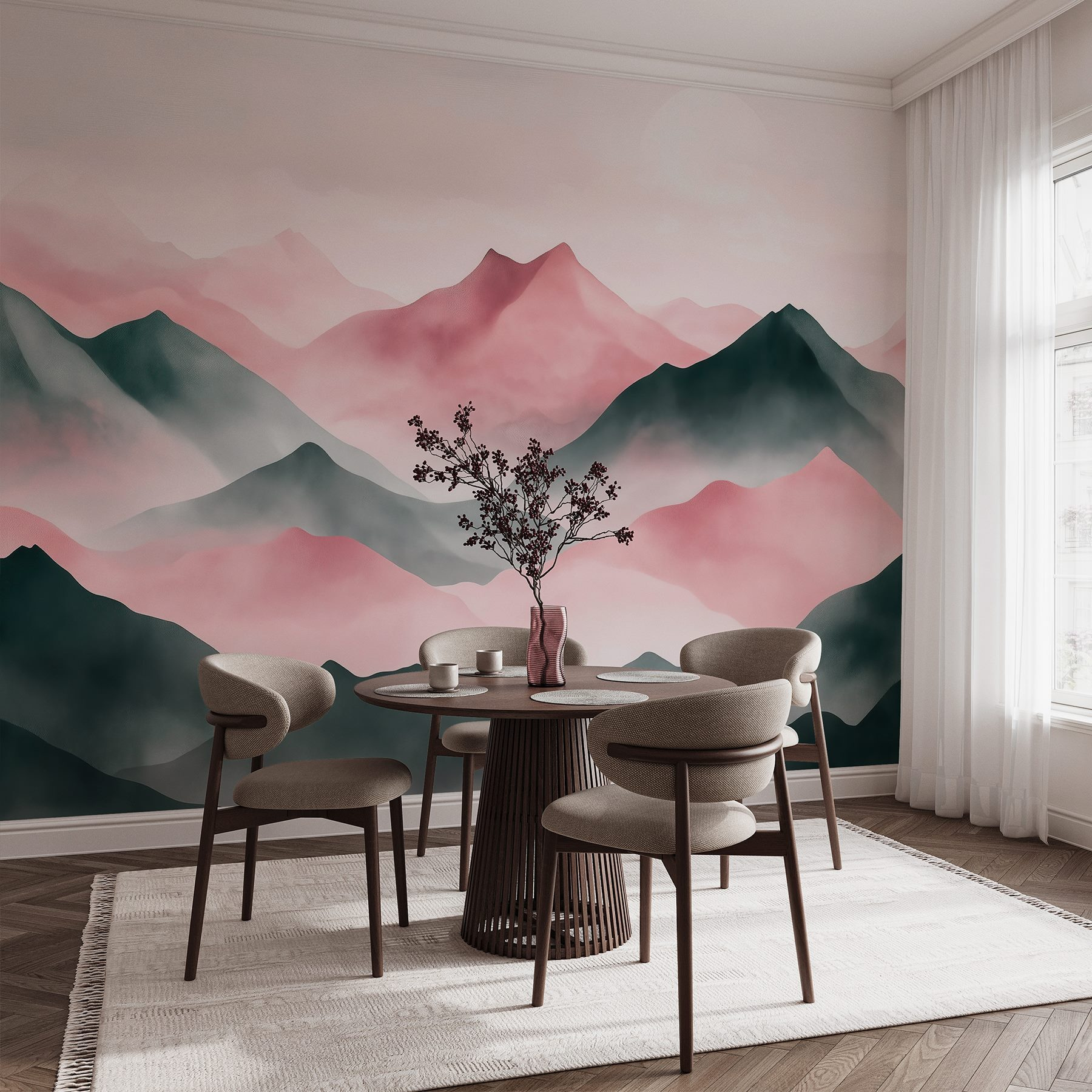 Transforme qualquer espaço com este mural de parede sonhador que apresenta uma cadeia de montanhas envolta num suave nevoeiro. Imagine acordar num quarto que parece uma fuga aconchegante para o grande ar livre – como isso seria bom? Os tons suaves de rosa e cinzento evocam uma atmosfera calma, perfeita para aqueles momentos em que só precisa de respirar e descontrair. Imagine-se a beber café, a admirar a vista e a sentir o peso do mundo a desaparecer. Este mural é como trazer uma fatia da natureza para dentro de casa, oferecendo um pano de fundo sereno para a vida quotidiana ou para as noites tranquilas. É o toque de magia de que todos os espaços precisam.