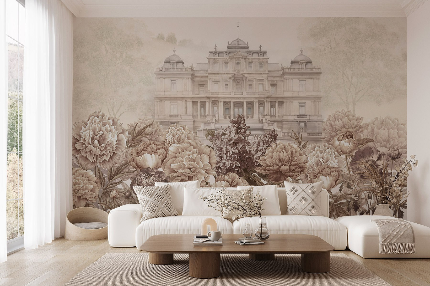 Dê um sopro de serenidade ao seu espaço com este deslumbrante mural de parede. Apresenta um grande edifício branco aconchegado com flores delicadas, criando um cenário de sonho que parece elegante e convidativo. Imagine entrar numa sala onde o encanto das peónias e lilases levanta instantaneamente o seu espírito. É como fugir para um jardim tranquilo sempre que entra. Perfeito para uma sala de estar ou até mesmo para um recanto de leitura acolhedor, este mural sussurra sofisticação, ao mesmo tempo que se sente quente e acessível. Pense em todos os elogios quando os seus amigos virem esta beleza – é um início de conversa!