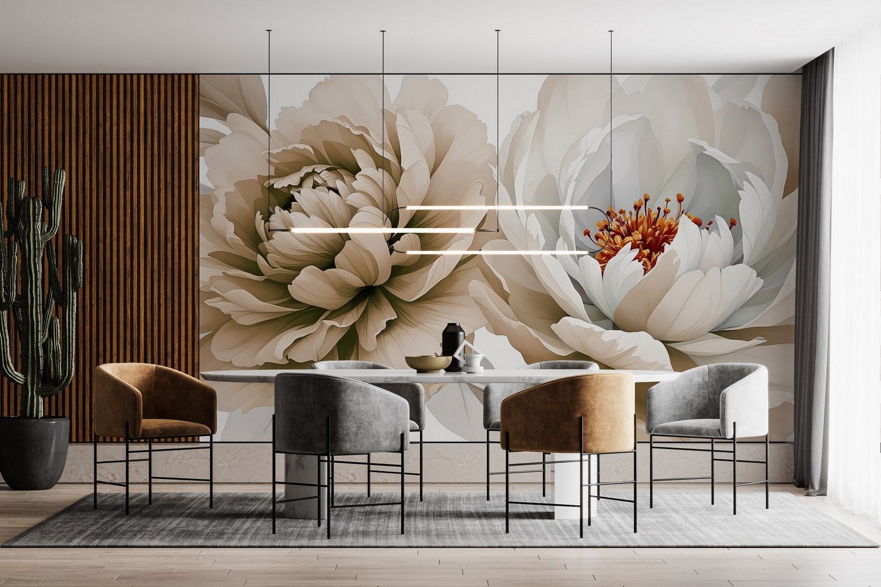 Transforme o seu espaço com um toque de elegância. O mural “Elegant Blooms in Soft Hues” traz uma vibração suave e sonhadora diretamente para qualquer divisão. Imagine acordar com estas flores deslumbrantes, com as suas cores suaves a sussurrarem calma. É como ter um jardim secreto na parede, sem necessidade de regar. Combine-o com uma iluminação acolhedora – talvez um candeeiro quente no canto – e tem um recanto tranquilo para beber chá ou enrolar-se com um bom livro. Os amigos vão pensar que tem um talento especial para o design. É tão convidativo que até pode querer organizar uma pequena festa no jardim!
