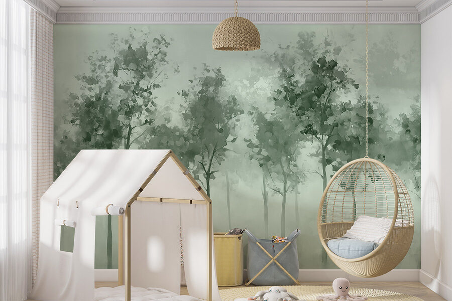 Os verdes suaves e o efeito de aguarela criam uma atmosfera calmante, perfeita para quem só quer descontrair depois de um longo dia. Tem aquela qualidade sonhadora que desperta a imaginação – talvez se sinta inspirado a dar um passeio no bosque ou apenas a saborear alguns momentos tranquilos em casa. Quer se trate de um recanto acolhedor ou de uma parede de afirmação, este mural convida à paz e à beleza, tornando cada olhar uma pequena fuga da realidade.
