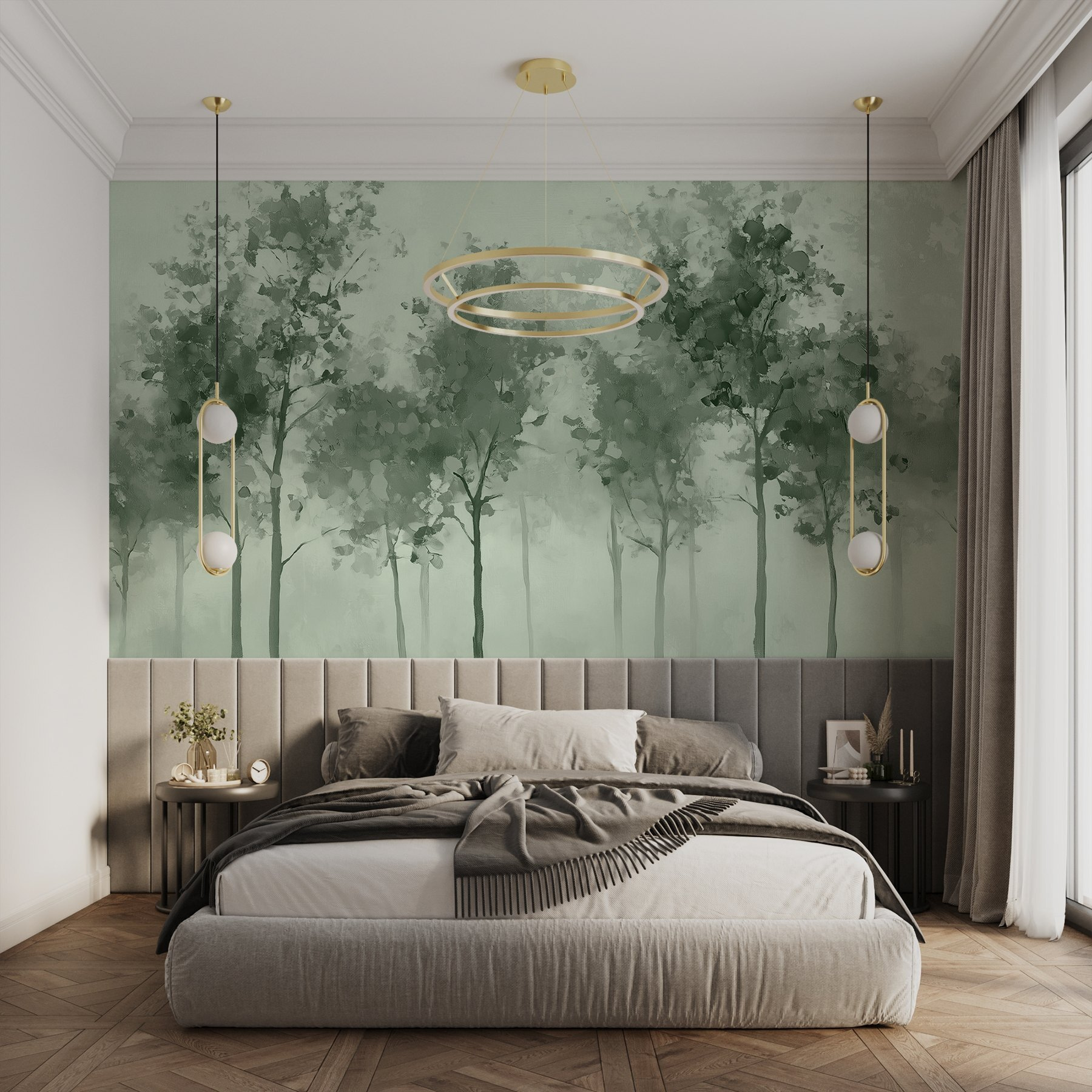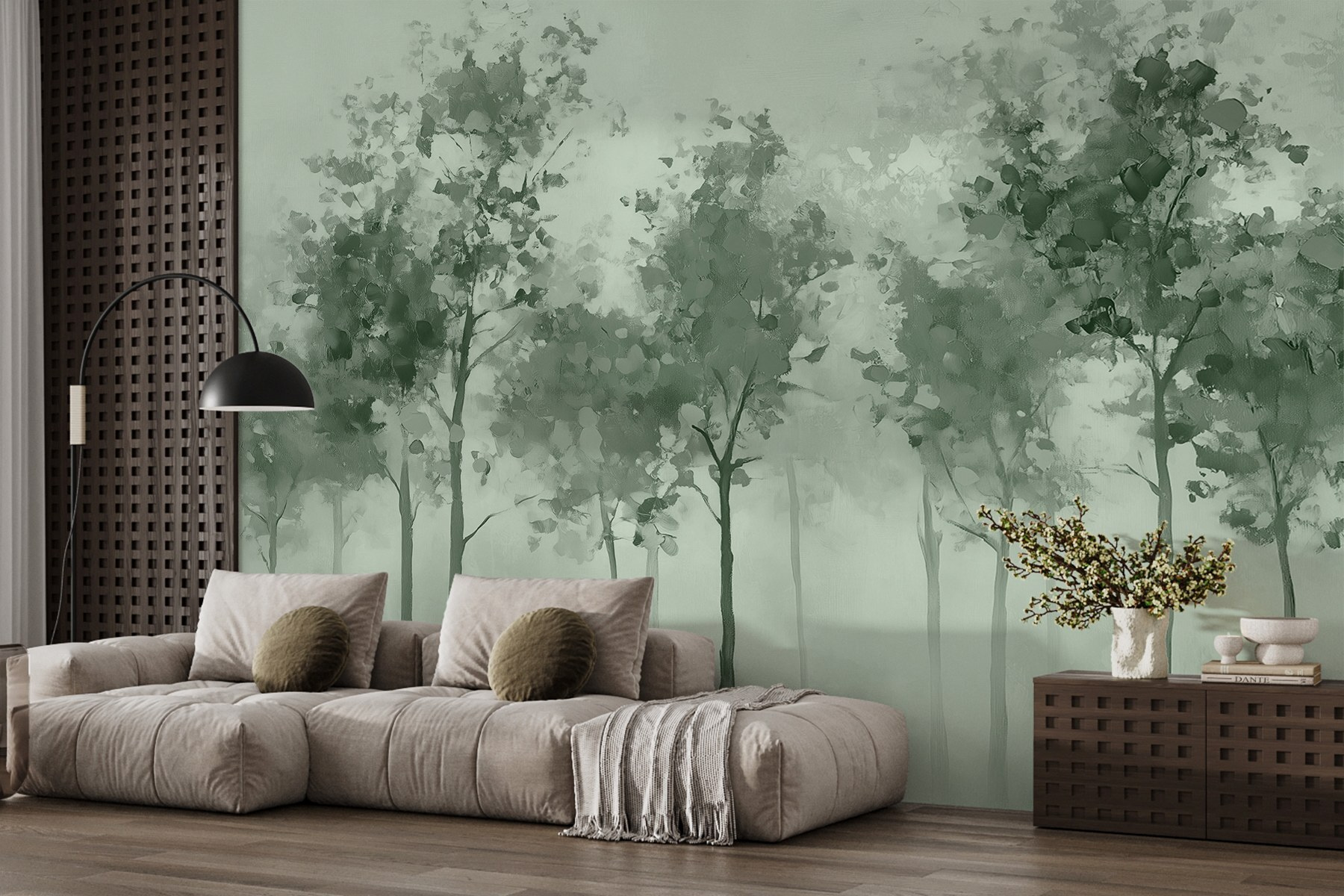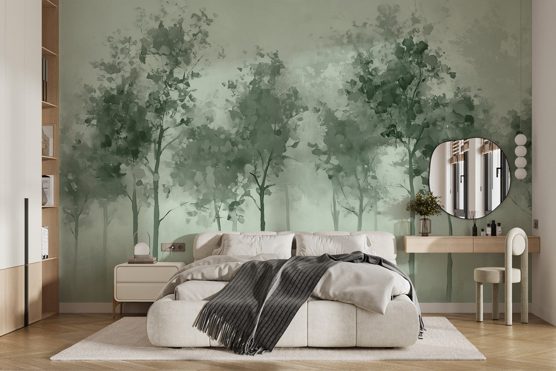 Transforme o seu espaço numa tranquila fuga da floresta com este mural de parede de cortar a respiração, com um sereno grupo de árvores envoltas numa suave névoa. É como trazer um pouco da natureza para a sua sala de estar, sem os insectos e o tempo! Imagine-se a enrolar-se com uma bebida quente, sentindo-se como se estivesse escondido num bosque tranquilo.