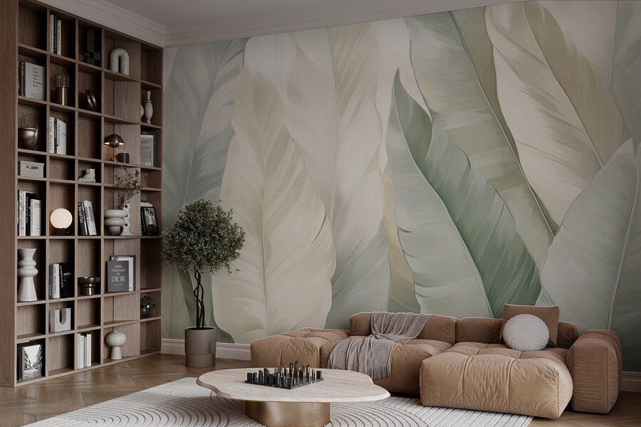 Papel de parede Tons suaves de folhas tropicais em conjunto Papel de parede Tons suaves de folhas tropicais em conjunto
