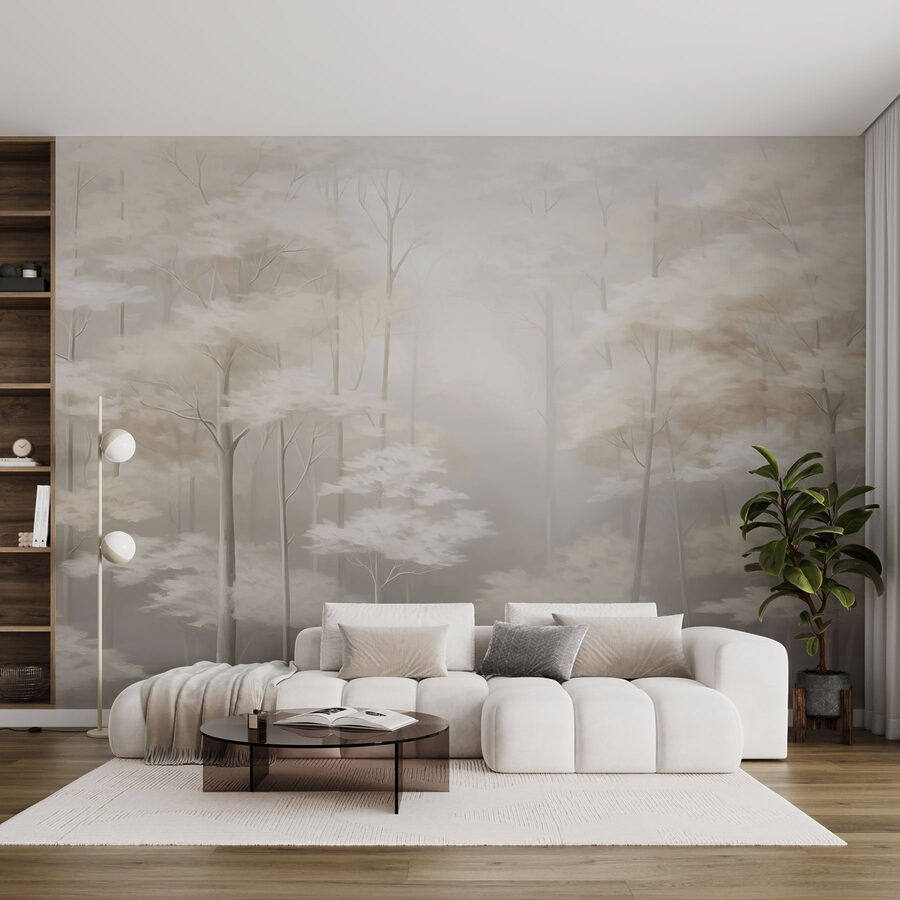 Imagine-se a entrar numa floresta de nevoeiro de sonho, onde os tons suaves e as árvores gentis o convidam a passear. Este mural de parede é como uma lufada de ar fresco para o seu espaço – uma mistura perfeita entre a tranquilidade da natureza e a arte moderna. Imagine noites aconchegantes passadas numa sala transformada por este cenário sereno. Não é apenas um mural; é um ambiente. Quer esteja a beber café ou a trabalhar no seu último projeto, esta cena calmante promete acalmar a mente e despertar a inspiração. Além disso, é um ótimo início de conversa para todos os seus convidados. Quem não gostaria de conversar sobre a beleza da natureza no conforto do lar?