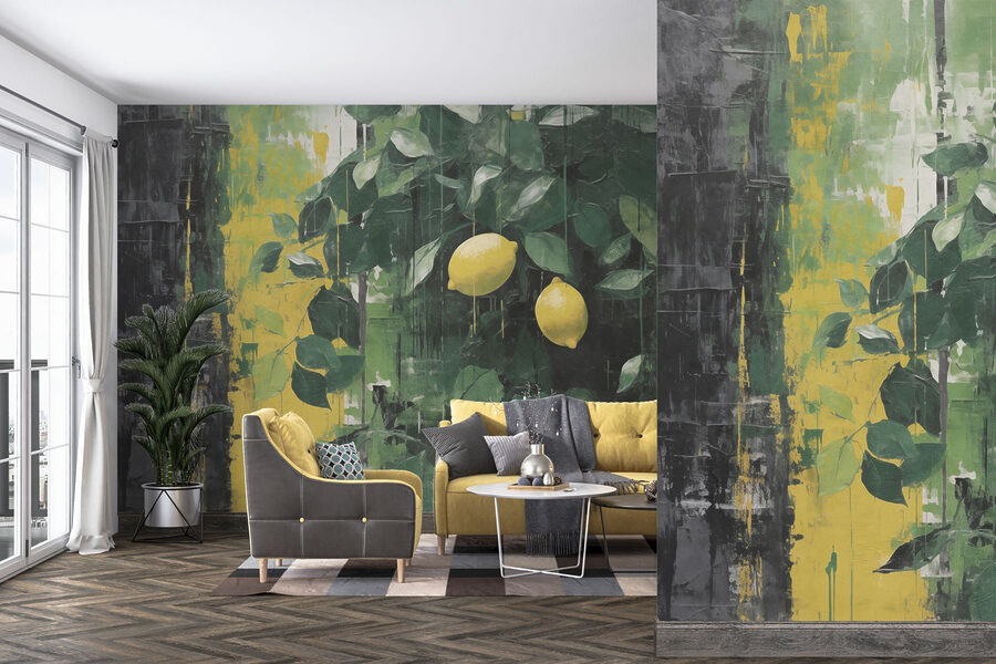 Transforme qualquer espaço com este mural de parede vibrante com limões diretamente da árvore. Imagine entrar no seu quarto e ser recebido por explosões de amarelo ensolarado e verdes ricos. É como trazer uma fatia do verão para dentro de casa – perfeito para aqueles dias sombrios em que precisa de um pequeno estímulo.