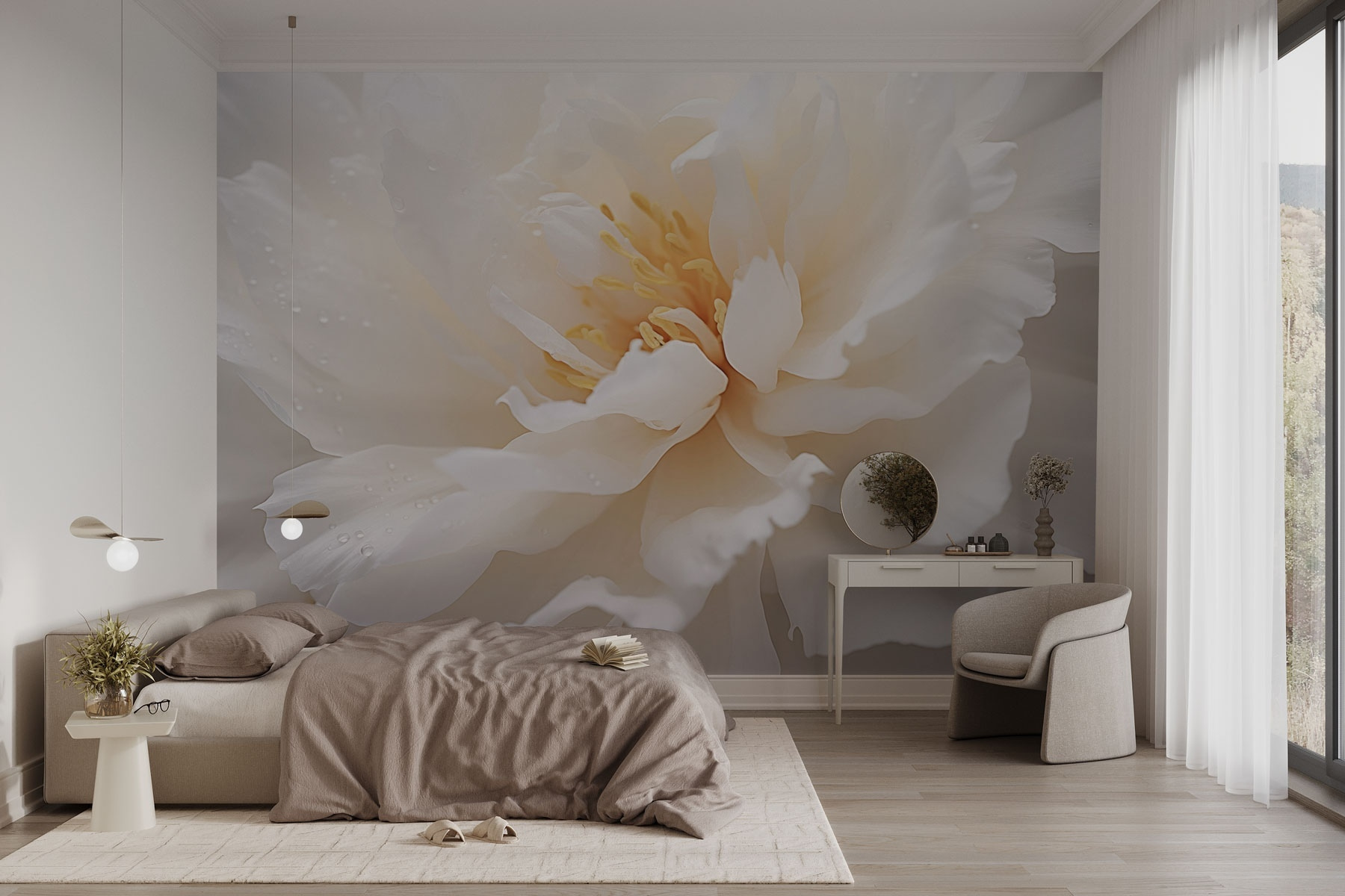 Transforme qualquer divisão com “Delicate Petals with Gentle Dew Drops”. Este mural capta a beleza das peónias, com as suas pétalas suaves a brilhar como se tivessem acabado de ser beijadas pelo orvalho da manhã. Imagine-se num canto acolhedor, a beber chá e a sentir-se como se estivesse num jardim sereno. É mais do que uma simples decoração – é uma deliciosa fuga à azáfama. Com a sua essência calmante, este mural convida à paz diretamente no seu espaço. Quer seja na sala de estar ou num recanto acolhedor, traz uma lufada de ar fresco, transformando as paredes numa experiência. Perfeito para aqueles que apreciam o toque suave da natureza!