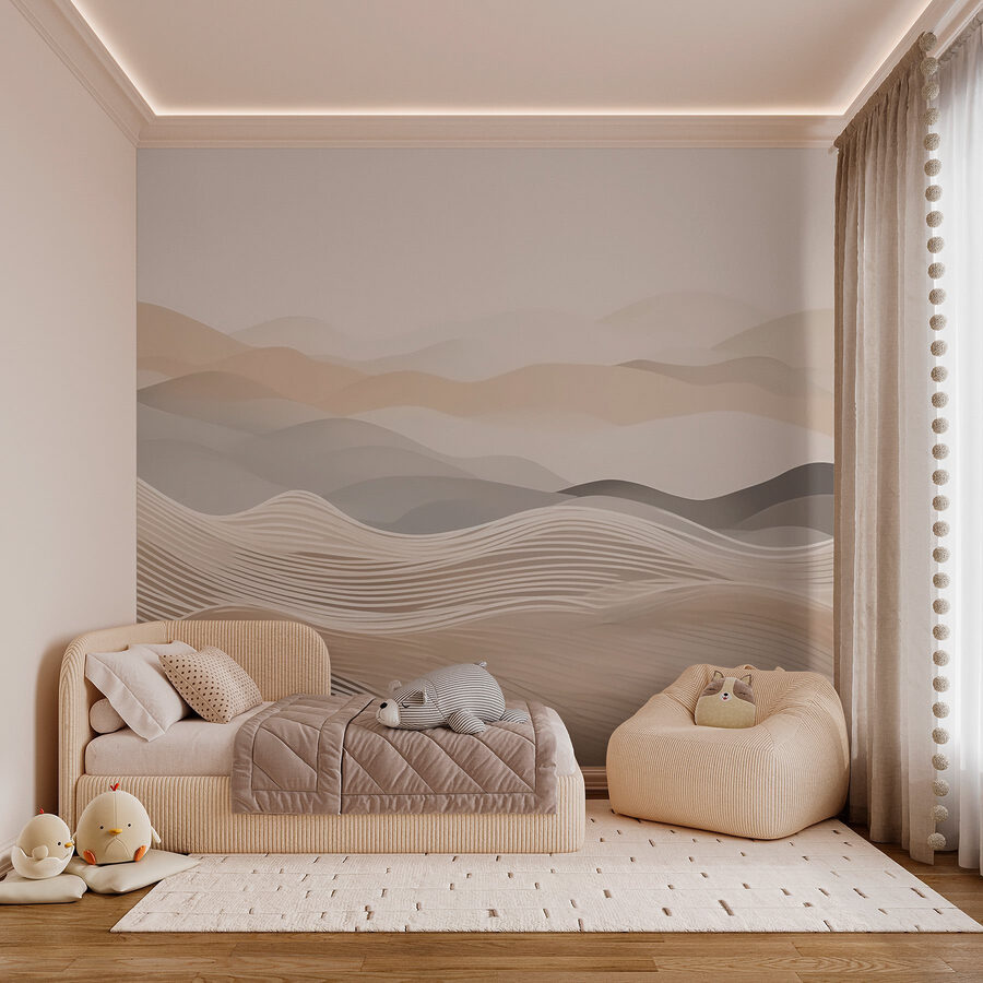 Transforme qualquer parede num refúgio acolhedor com este mural que retrata colinas suaves em ondas suaves de branco e castanho. É como trazer uma fatia da natureza diretamente para o coração da sua casa. Imagine-se a enrolar-se com um bom livro ou apenas a beber café enquanto olha para estas curvas suaves. Quase parecem ondular como um mar calmo – perfeito para criar uma vibração pacífica. Os tons subtis deste mural combinam lindamente com qualquer decoração, tornando-o um cenário fantástico para as suas aventuras no design de interiores. É tudo uma questão de encontrar o equilíbrio entre conforto e estilo, não acha? Acrescente um toque de tranquilidade ao seu espaço; afinal de contas, quem não quer que a sua casa pareça um abraço caloroso?