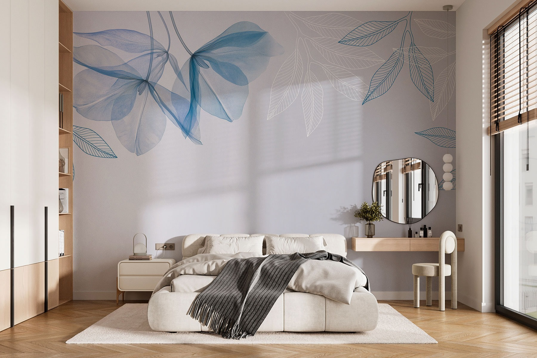 Transforme uma parede simples numa fuga serena com este mural de parede com folhas azuis e brancas. É como convidar uma brisa suave para dentro de casa, sussurrando segredos do grande ar livre. Imagine um recanto acolhedor, uma chávena de chá fumegante e este mural a criar o ambiente perfeito – não é um sonho?