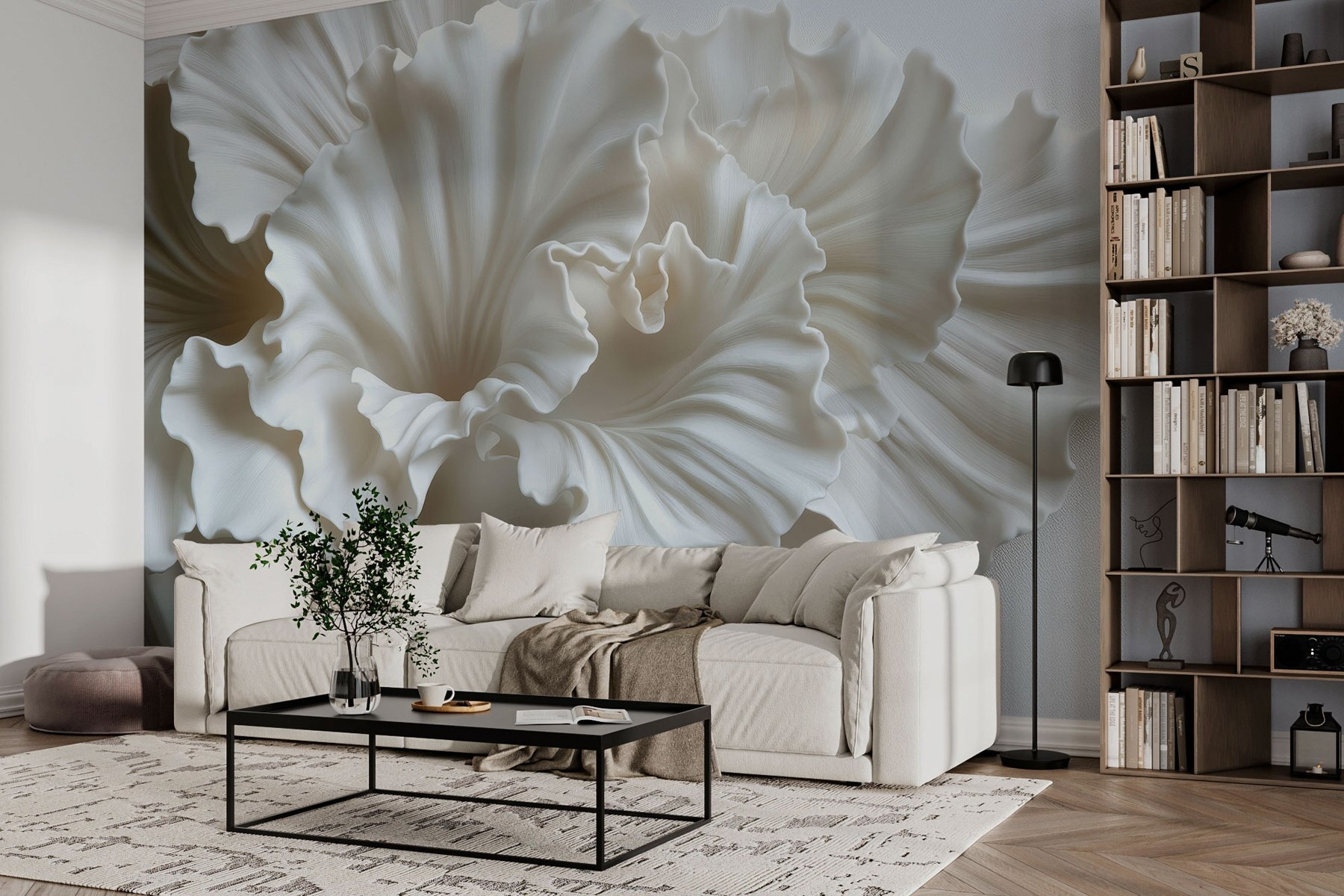 Transforme qualquer divisão com este deslumbrante mural de parede com delicadas texturas florais brancas que parecem dançar juntas. Imagine entrar num espaço onde a luz brinca lindamente através dessas pétalas suaves, fazendo com que até as segundas-feiras se sintam um pouco mais brilhantes. É como estar rodeado por uma brisa suave de flores frescas sem espirrar. Perfeito para um recanto de leitura acolhedor ou uma elegante área de jantar, este mural traz um encanto calmo que convida ao calor e à tranquilidade. Os amigos podem passar por aqui, dar uma olhadela e perguntar como é que essa vibração pacífica foi parar ali. Sorria e desfrute dos elogios! Quer se sinta inspirado ou simplesmente à vontade, este mural dá o tom perfeito.