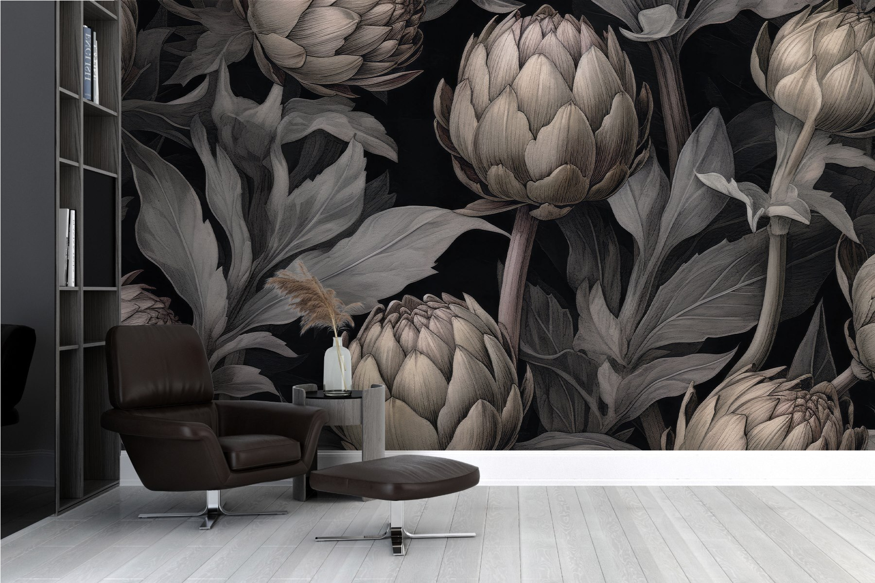 Transforme o seu espaço com este deslumbrante mural com alcachofras e folhas a dançar sobre um elegante fundo preto. É como ter uma parede de jardim com estilo que ilumina instantaneamente qualquer divisão. Imagine isto: os amigos vêm cá a casa e, de repente, aquela parede rouba a cena – todos olham para aquelas alcachofras maravilhosamente detalhadas, quase como se pudessem sentir o cheiro a terra de uma colheita fresca. É sofisticado mas acolhedor, perfeito para uma sala de estar ou mesmo para uma cozinha. Quem diria que as alcachofras poderiam trazer uma vibração tão encantadora? Dê um toque de natureza à sua casa sem a preocupação da manutenção!