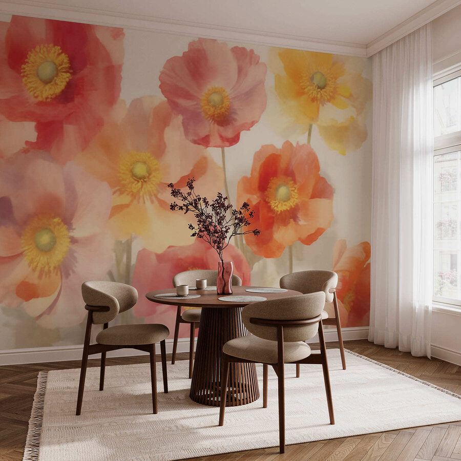 Transforme o seu espaço com este deslumbrante mural de parede com um alegre ramo de flores sobre um fundo branco fresco. É como trazer um jardim para o interior sem a sujidade – bónus! Cada flor parece dançar com a cor, fundindo tons suaves numa deliciosa obra-prima de aguarela. Imagine acordar com esta vista e sentir o seu café da manhã um pouco mais especial. É perfeito para enfeitar um canto sem graça ou para fazer uma declaração na sua sala de estar. Este mural evoca calor e alegria, levantando sem esforço os espíritos e provocando sorrisos. Pode ser que o inspire a pegar num pincel – ou pelo menos numa flor ou duas!