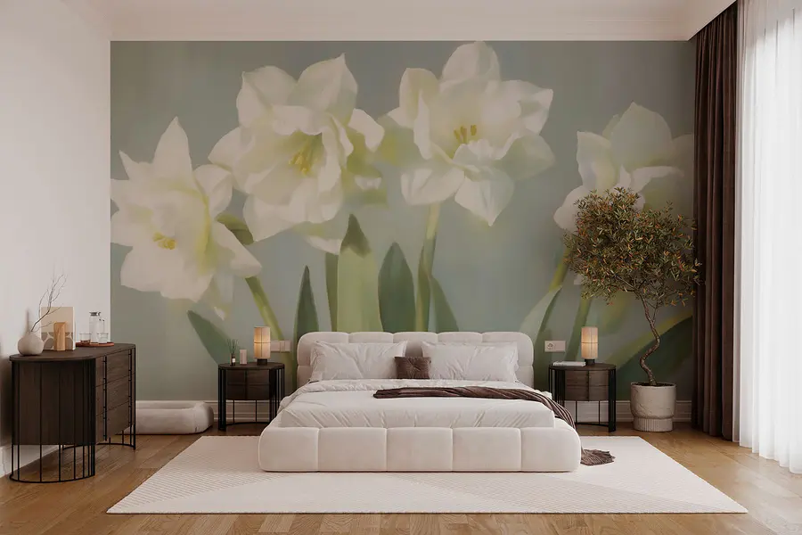 Transforme o seu espaço com este mural encantador que apresenta um grupo de delicadas flores brancas. Imagine entrar numa sala cheia de um encanto suave que o faz sentir como se tivesse entrado num jardim tranquilo. As cores suaves dançam como sussurros, criando uma atmosfera que é simultaneamente calmante e refrescante. Perfeito para um recanto de leitura acolhedor ou para uma sala de estar luminosa e arejada, acrescenta aquele toque de calor a que é difícil resistir. Os seus convidados podem parar e perguntar-se se estão a sonhar quando a virem. Uma forma encantadora de introduzir um pouco de natureza na sua vida, sem necessidade de ter um polegar verde!