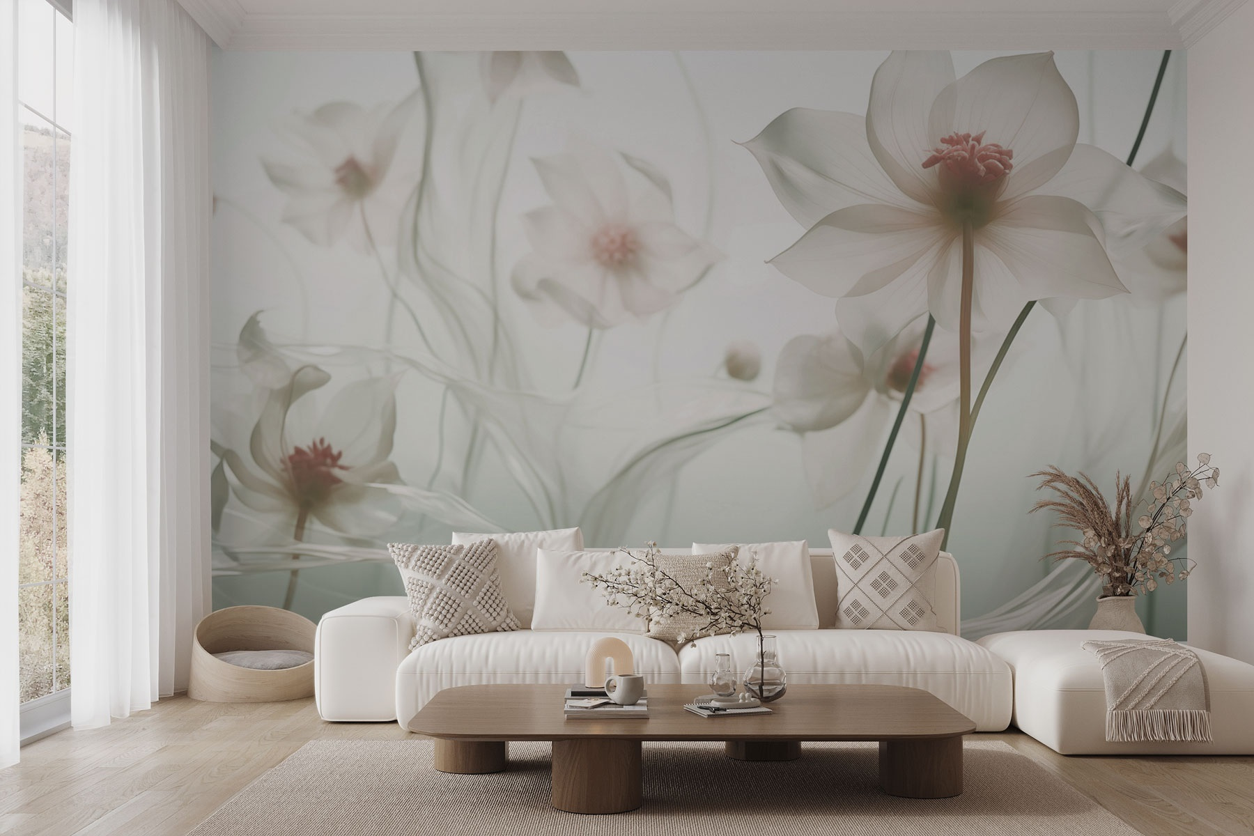 Transforme uma parede simples numa escapadela de sonho com o “Whispers of Delicate Floral Elegance”. Este mural assemelha-se a uma brisa suave num jardim florido, com flores suaves a dançar no meio de mechas. Imagine-se a vaguear por um oásis sereno enquanto bebe um chá de ervas – uma sensação de felicidade, certo? As cores são subtis, criando uma atmosfera calma que o faz suspirar de contentamento. Perfeito para recantos acolhedores ou até para aquele corredor estranho que precisa de um pouco de amor. Convida ao calor, à beleza e a uma pitada de capricho em qualquer espaço, fazendo de cada olhar um pequeno momento de alegria. Quem diria que as flores podiam sussurrar tão docemente?