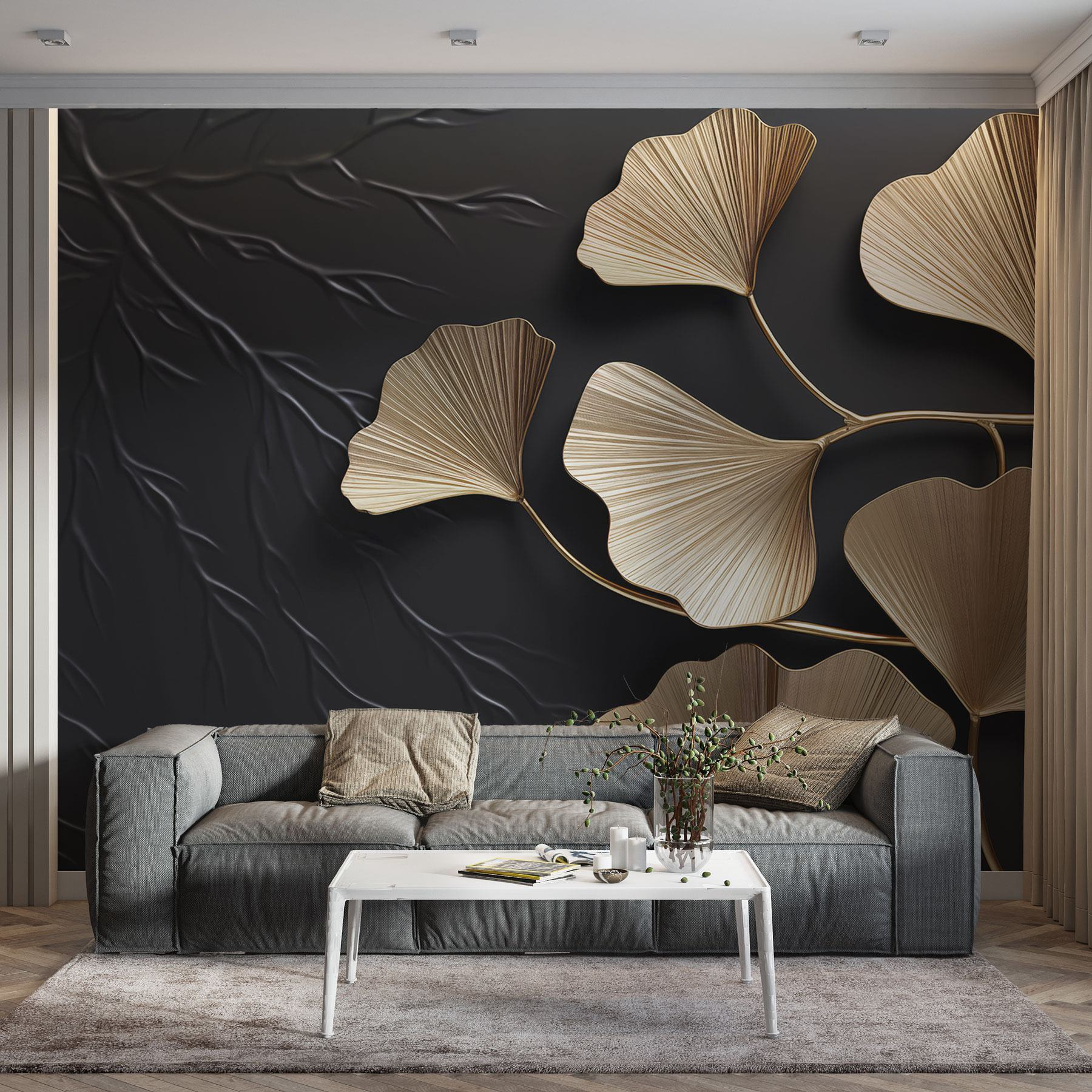 Transforme uma parede sem graça numa caraterística deslumbrante com este mural de folhas intrincadas contra um fundo escuro. Imagine entrar num espaço acolhedor onde a natureza se mistura na perfeição com o estilo moderno. O design delicado das folhas acrescenta um toque de elegância sem ser demasiado exigente – perfeito para quem aprecia um pouco de sofisticação. Imagine-se a beber um café enquanto desfruta das vibrações calmantes que este proporciona. É como trazer o ar livre para dentro de casa, sem os insectos. Fácil de aplicar e divertido de reorganizar, este mural é uma forma deliciosa de refrescar qualquer divisão. Porque não deixá-lo inspirar um sonho sério?