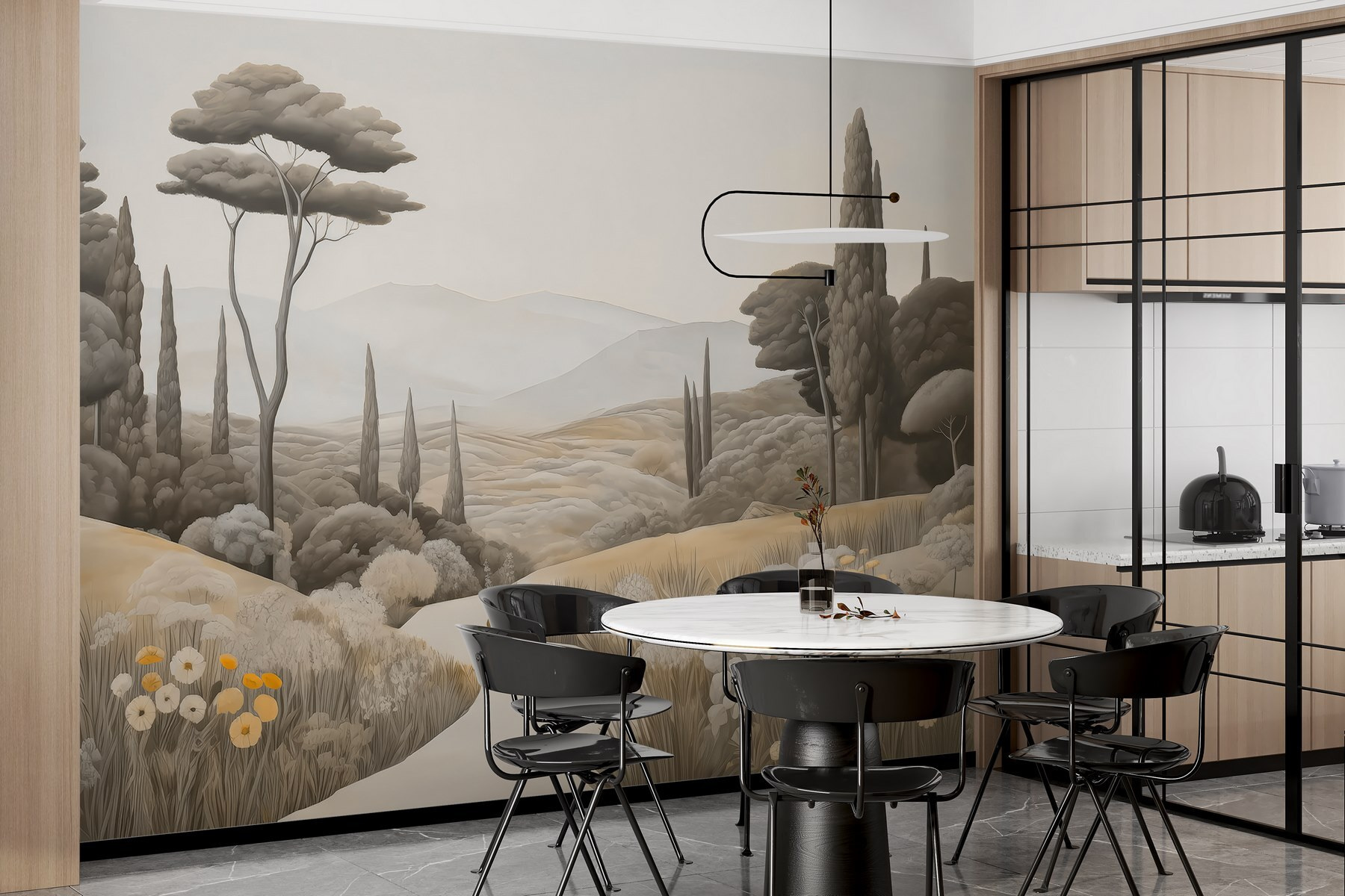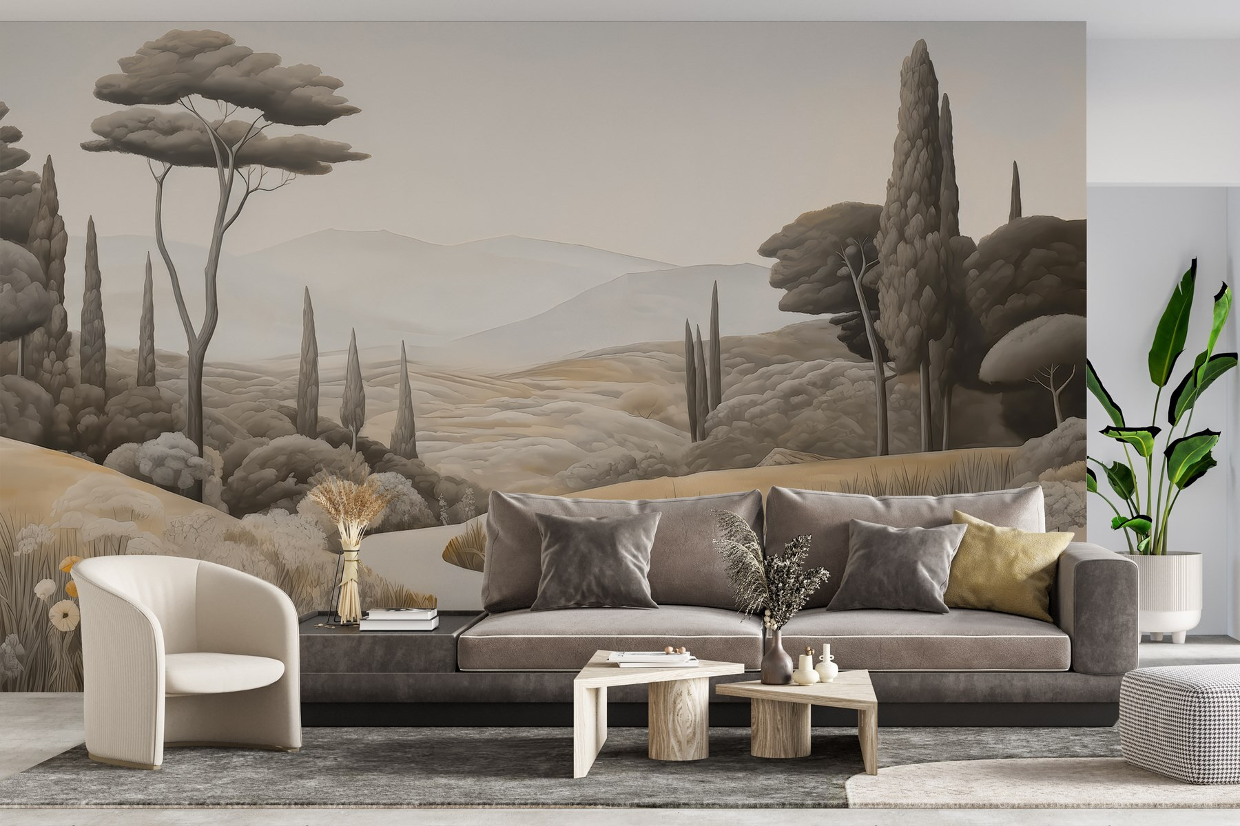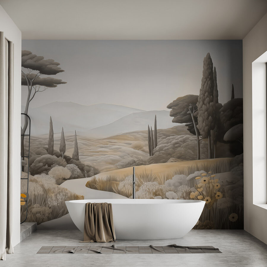 Transforme o seu espaço com este espantoso mural de parede, “Paisagem com uma estrada sinuosa e árvores”. Dá vida a um campo sereno, convidando a natureza para dentro de casa sem a confusão do exterior. Imagine beber café num domingo preguiçoso enquanto contempla colinas suaves e árvores a balançar – é como umas mini-férias mesmo na sua parede. Perfeito para esses momentos de sonho, este mural envolve o seu quarto em tons quentes de terra e detalhes suaves que o fazem querer respirar profundamente. Sussurra relaxamento, lembrando-o de passeios pacíficos sob um céu aberto. Imagine as conversas que poderia desencadear ou as vibrações calmas que traz – que toque doce para qualquer recanto!