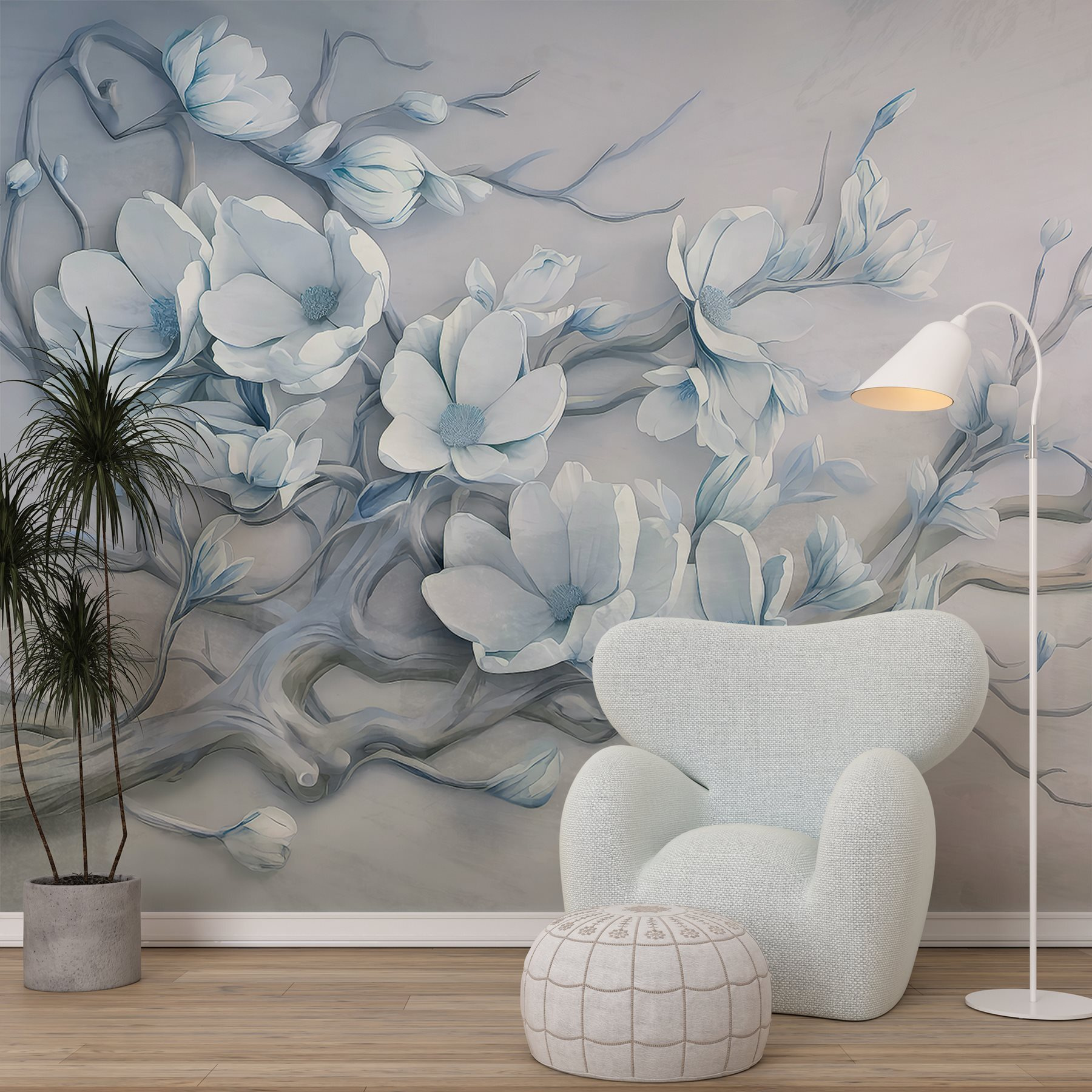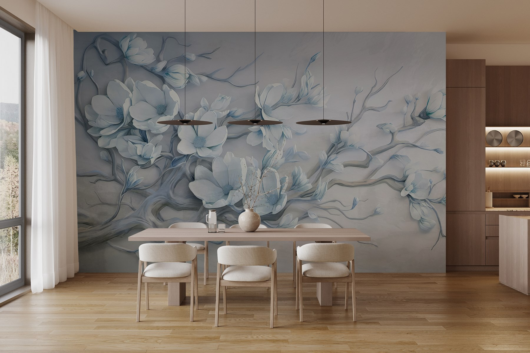 Transforme o seu espaço com este encantador mural de parede com delicadas flores brancas num ramo. É como trazer uma suave brisa de primavera diretamente para a sua casa. Os tons suaves e as linhas suaves criam uma atmosfera calma – perfeita para um recanto de leitura acolhedor ou um quarto sereno. Imagine-se a bebericar chá enquanto olha para estas flores, sentindo o stress do dia a derreter. Cada olhar parece uma mini-fuga para um jardim tranquilo. Não se trata apenas de decoração; é uma experiência, que convida ao calor e à elegância em qualquer divisão. Também é um verdadeiro início de conversa – é possível que os seus amigos a admirem tanto como a si!