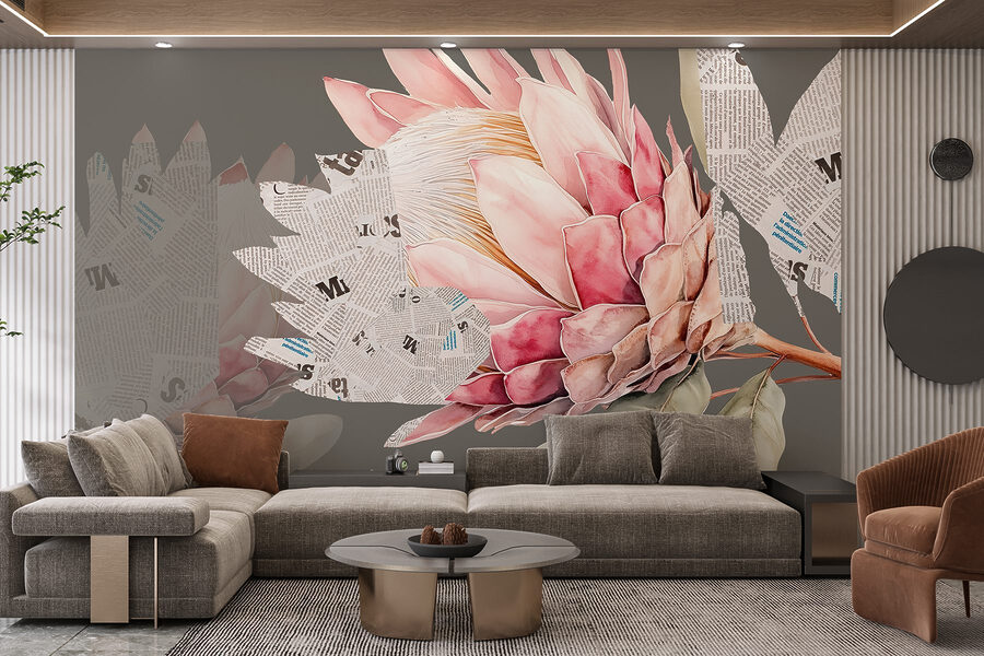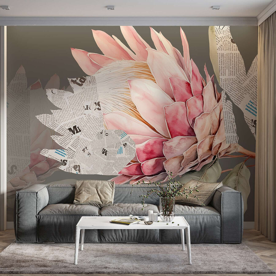 Transforme qualquer divisão com este mural de parede encantador que apresenta uma flor deslumbrante rodeada por folhas extravagantes e pedaços de jornal. É como se a natureza e a criatividade tivessem uma conversa agradável e decidissem agitar um pouco as coisas. Imagine entrar no seu espaço e ser recebido por pétalas vibrantes que parecem saltar diretamente da parede, convidando-o a fazer uma pausa e a absorver a beleza. Este mural acrescenta uma brisa fresca de charme e carácter, tornando-o o cenário perfeito para manhãs acolhedoras com café ou noites inspiradoras cheias de riso. Qualquer pessoa se sentiria animada só de estar perto dele, como se cada olhar trouxesse um pouco de sol para dentro de casa. Não é apenas uma decoração; é um estado de espírito!