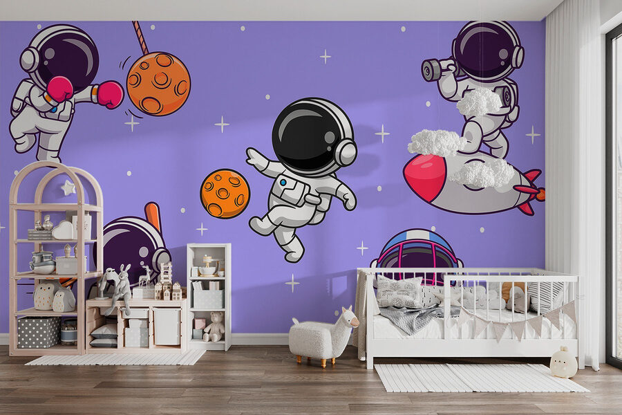 Imagine entrar numa sala onde os astronautas estão a dar uma festa cósmica – parece divertido, certo? Este mural capta esse espírito lúdico com astronautas de desenhos animados a saltarem no espaço, envolvendo-se em tudo, desde o boxe com pedras lunares até ao zoom em foguetões. É como uma história vibrante que se desenrola na sua parede, perfeita para crianças ou para os jovens de coração. Imagine os momentos sérios da vida quotidiana a iluminarem-se quando vislumbra estes peculiares exploradores do espaço, lembrando-o de abraçar a alegria e a aventura. Quem não gostaria de ter uma fatia do universo salpicada de felicidade? Transforme um espaço simples numa fuga imaginativa onde os sonhos voam!