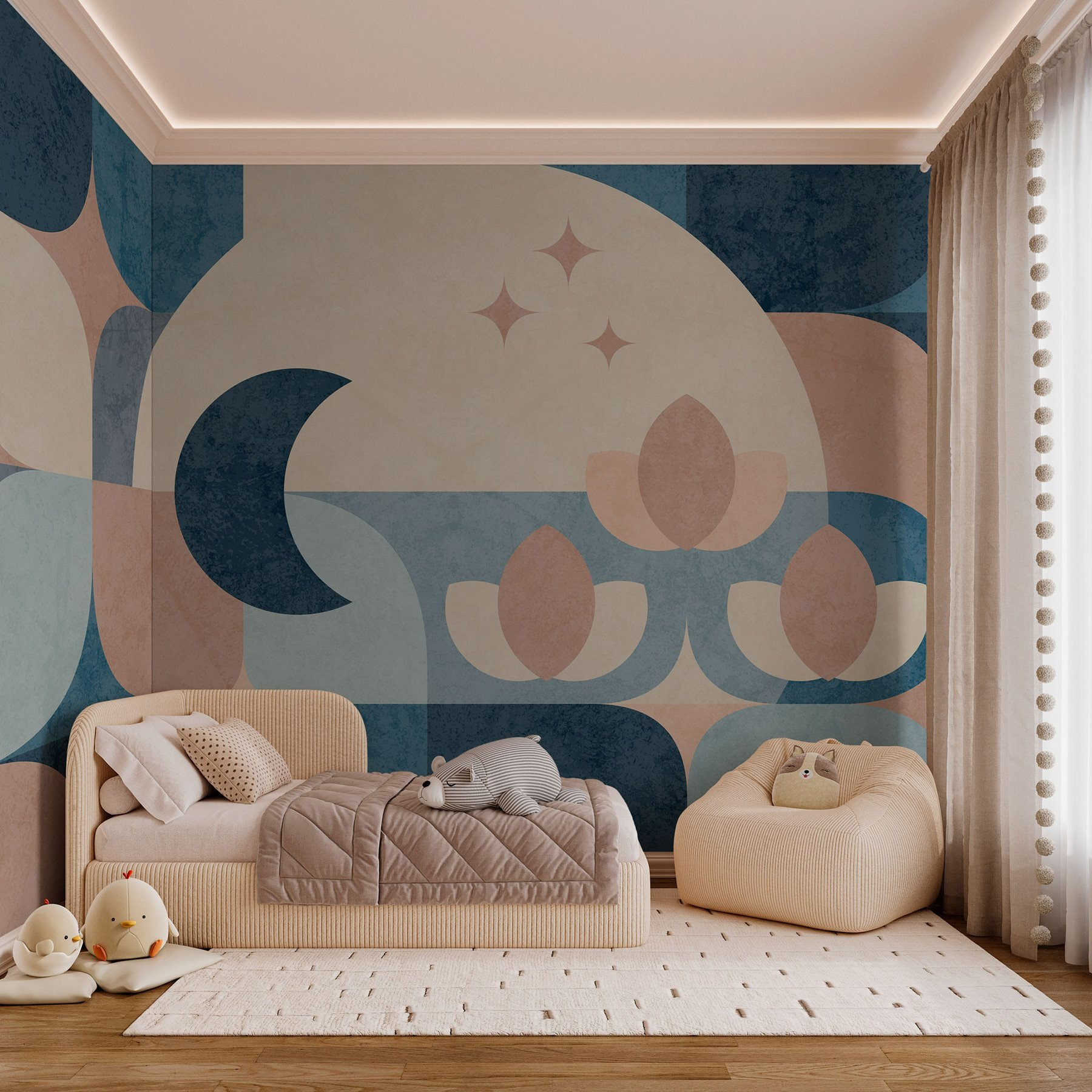 Transforme qualquer parede numa fonte de conversa com este deslumbrante mural geométrico azul e cor-de-rosa. É como um abraço aconchegante para o seu quarto – arrojado mas calmante, com formas que dançam pela superfície. Imagine-se a beber café e a perder-se na sua vibração calma. Cada curva e ângulo convidam o olhar a vaguear, despertando ideias para as almas criativas que andam por aí. Perfeito para uma sala de estar, um escritório em casa ou até mesmo um quarto de bebé divertido, este design sussurra calor ao mesmo tempo que faz uma afirmação. Acrescente um pouco de charme e veja o seu espaço ganhar vida. É arte de parede que parece um sonho.