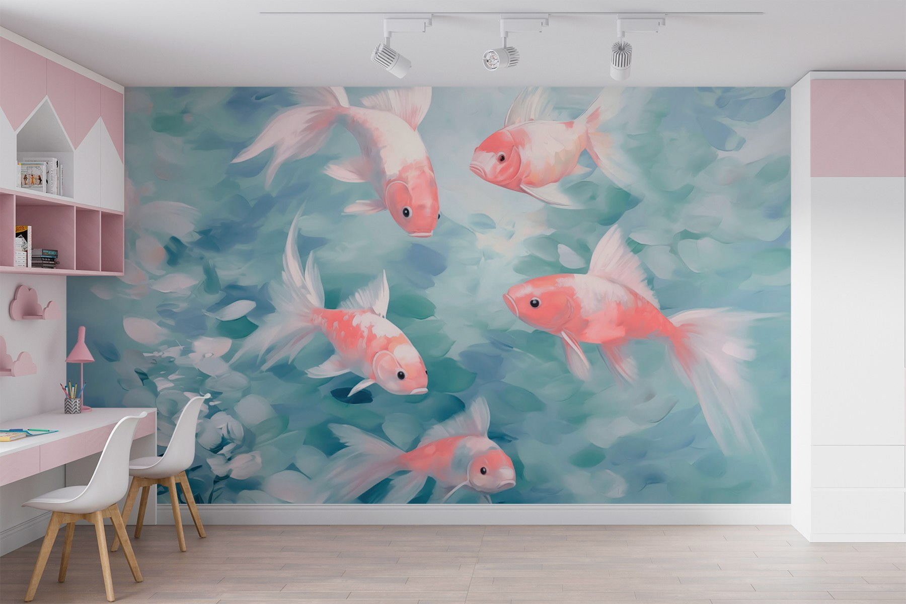 Transforme uma parede sem graça numa vibrante fuga subaquática com o mural “Swirling Fish”. Imagine entrar num aquário de sonho mesmo na sua sala de estar. Estes peixes encantadores nadam em tons suaves de azul e verdes suaves, criando um ambiente tranquilo. Perfeito para um quarto de crianças ou um recanto acolhedor, este mural convida a devaneios e momentos de tranquilidade. Imagine tardes preguiçosas, onde se pode beber chá e olhar para estas criaturas brincalhonas. É mais do que uma simples decoração; é como trazer uma fatia serena da natureza para dentro de casa. Quem não se sentiria mais feliz com uma pequena companhia de natação?