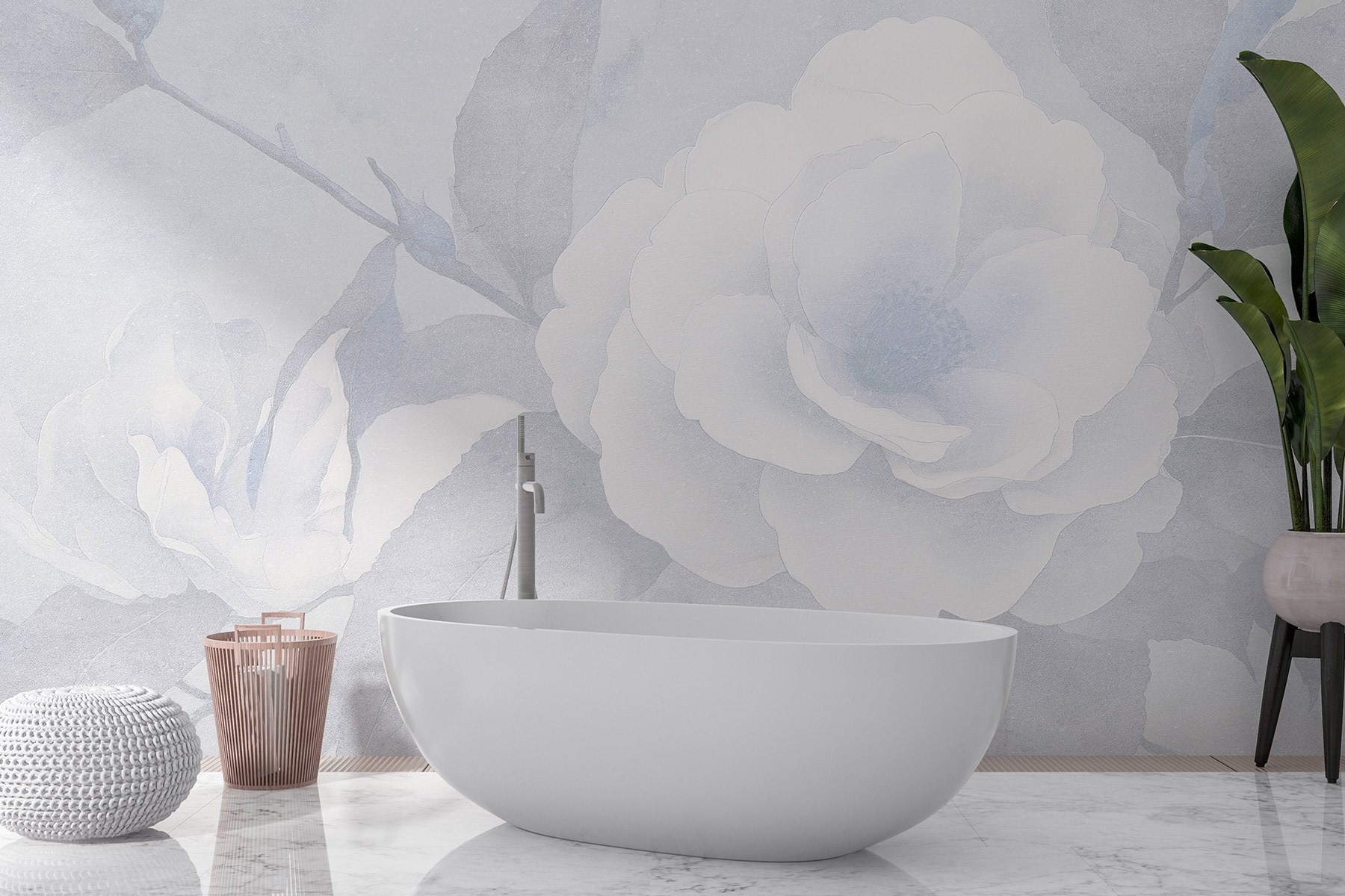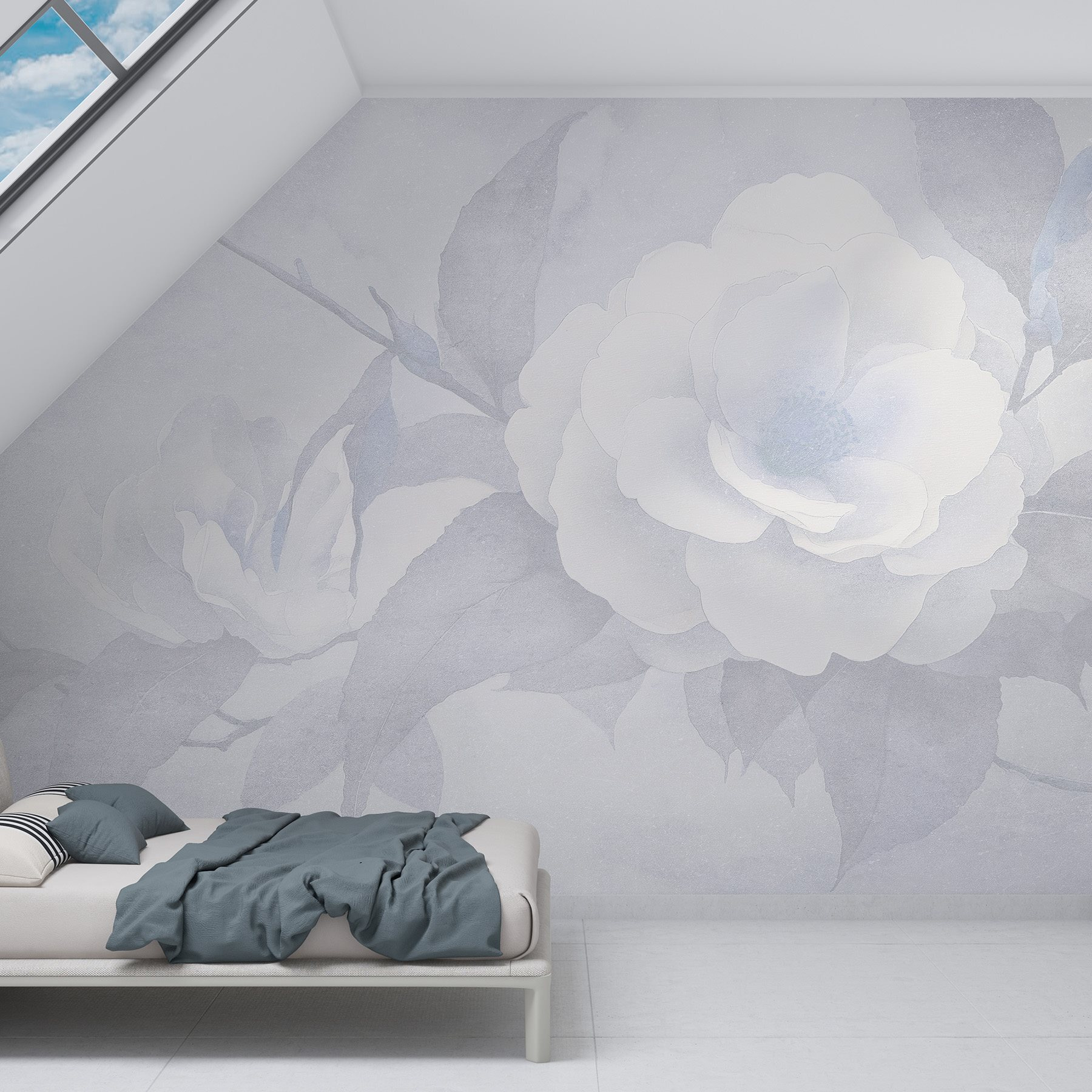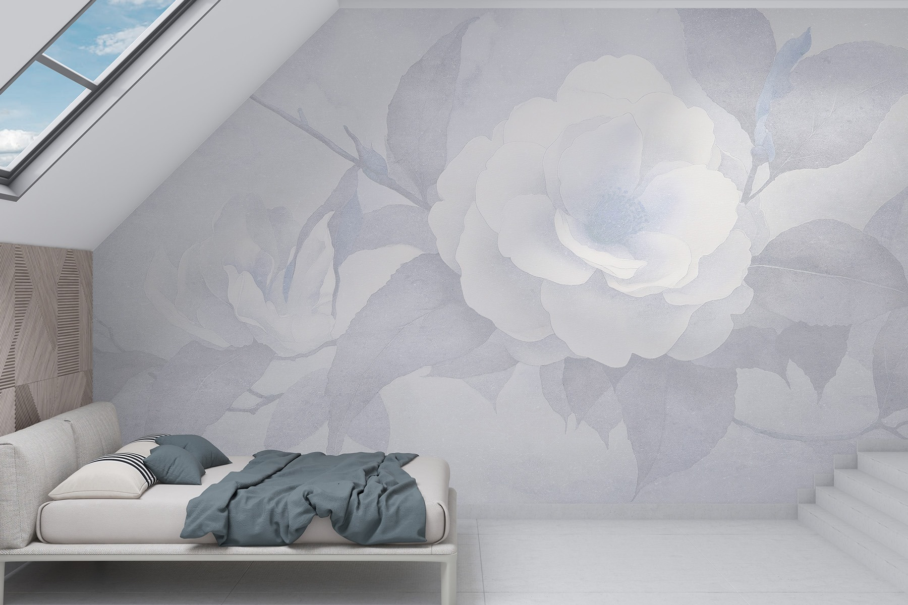 Transformar um espaço pode ser tão simples como adicionar este mural de parede com delicadas flores e folhas brancas. Imagine acordar com esta beleza serena todos os dias. É como convidar a natureza para dentro de casa sem se preocupar em regar as plantas ou insectos incómodos. A paleta suave cria uma vibração calmante – perfeita para um recanto de leitura acolhedor ou um retiro tranquilo no quarto. Os amigos vão passar por lá só para a admirar. Além disso, suscita conversas como “É arte ou natureza?” – e quem não gosta de um pouco de mistério na sua decoração?