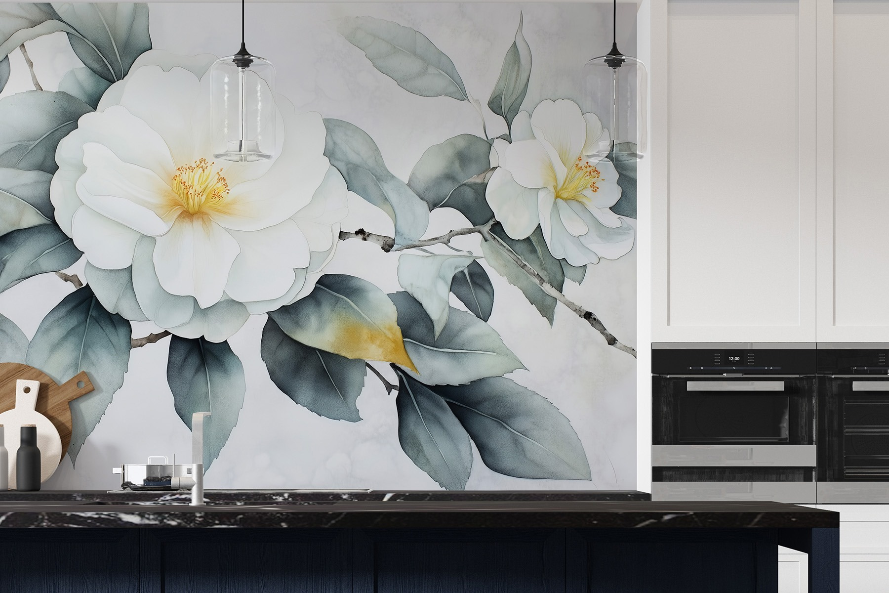 Transforme uma parede aborrecida numa fuga serena com este adorável mural de flores brancas com suaves folhas verdes. É como trazer uma lufada de ar fresco para dentro de casa sem precisar de regar nada. Perfeito para aqueles dias em que um pouco de vegetação pode levantar o ânimo, este mural cria um cenário calmante para qualquer divisão. Imagine-se a beber o seu café da manhã enquanto olha para esta beleza – é praticamente umas mini-férias. Além disso, é um ótimo início de conversa, especialmente quando os convidados perguntam sobre o seu “jardim secreto”. Quem precisa de uma remodelação floral completa quando este mural faz o truque?