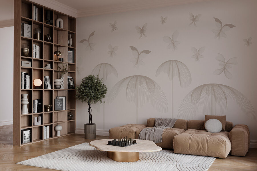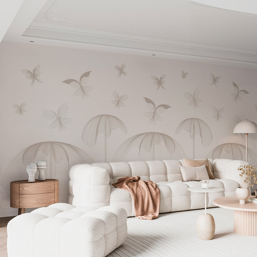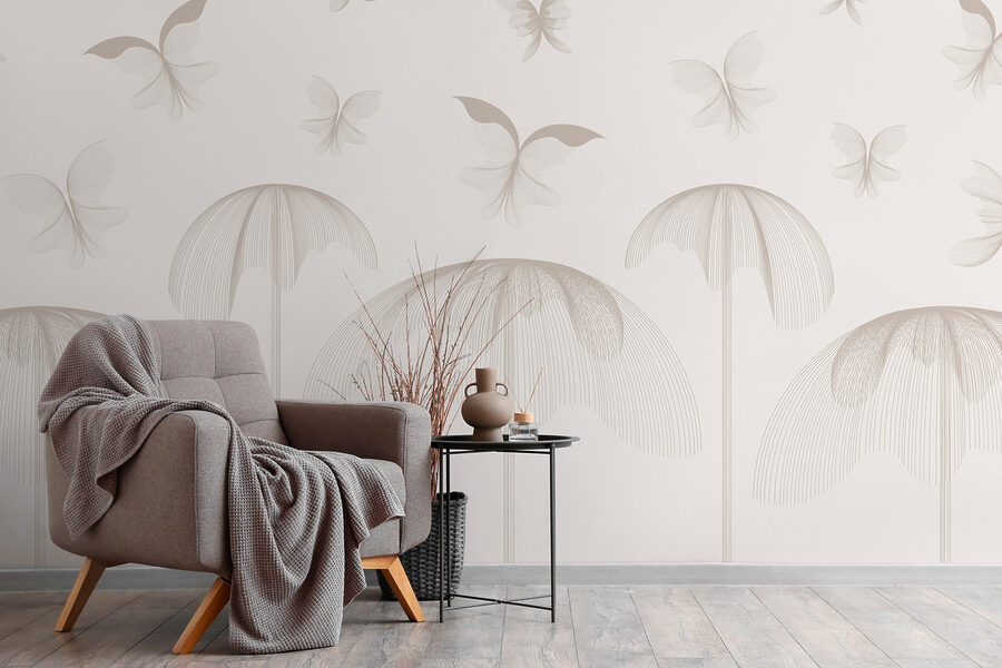 Traga uma lufada de ar fresco para o seu espaço com este encantador mural de parede com borboletas a esvoaçar no meio de flores delicadas. Imagine entrar num jardim sereno de cada vez que entra na sala. Os desenhos suavemente rodopiantes e os tons suaves criam um cenário sereno que convida a vibrações pacíficas. É como se as suas paredes estivessem a sussurrar palavras doces, incitando-o a relaxar. Junte-lhe uma cadeira acolhedora e um bom livro e terá o recanto perfeito. A sério, quem não gostaria de saborear um chá num paraíso de borboletas? Transforme a sua casa numa fuga caprichosa que desperta alegria todos os dias.