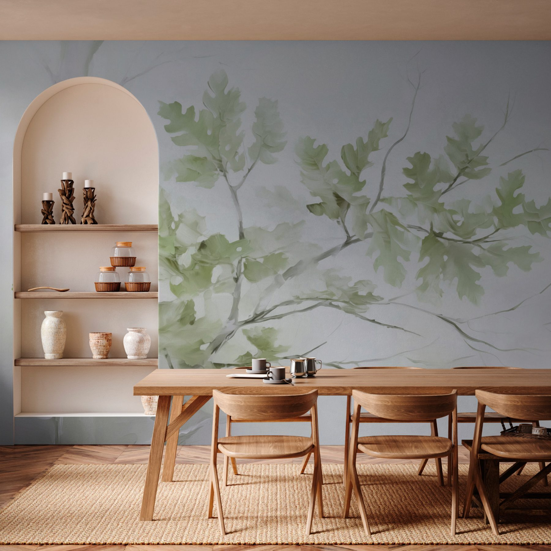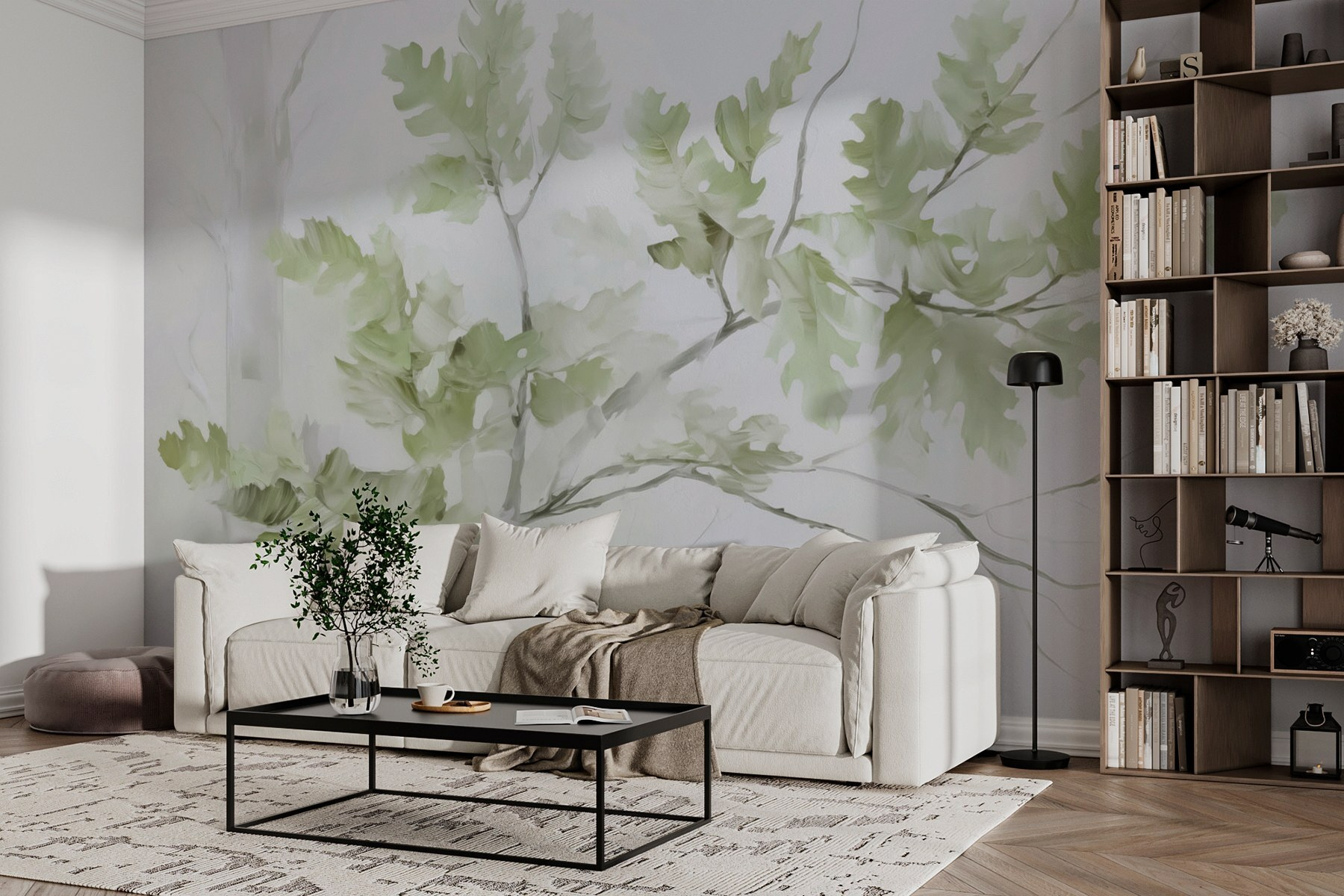 Transforme qualquer divisão num oásis sereno com este cativante mural de parede de um ramo de árvore adornado com folhas delicadas. Imagine acordar com esta suave lembrança da natureza, verdes suaves que sussurram calma contra um subtil pano de fundo. É como ter uma pequena floresta mesmo em sua casa – perfeita para contemplar enquanto bebe o seu café da manhã ou se descontrai após um longo dia. Complementa na perfeição recantos acolhedores e espaços contemporâneos. Pode até dar por si a sonhar acordado com tardes tranquilas passadas debaixo de uma árvore, com o mundo a desvanecer-se. É mais do que uma simples decoração – é um convite para relaxar e respirar.