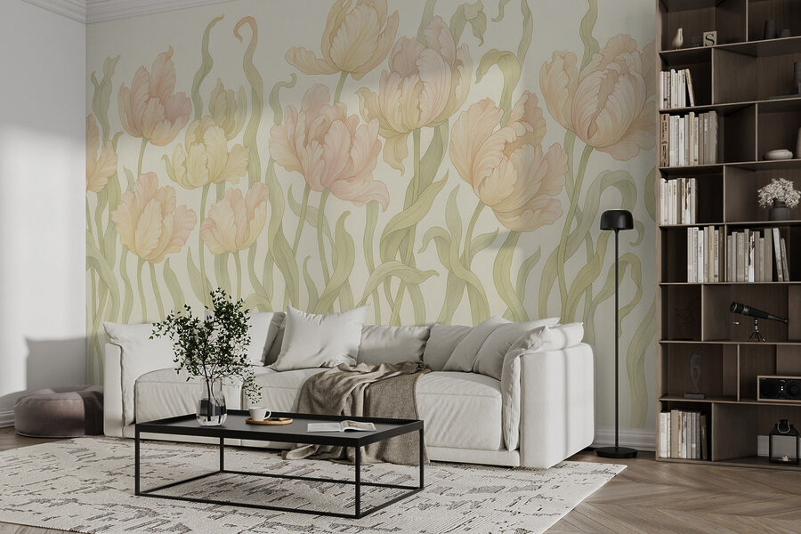 Transforme uma parede sem graça num país das maravilhas em flor com este mural de cortar a respiração com tulipas delicadas em cores suaves. Imagine entrar num jardim sereno todos os dias, onde estas lindas flores balançam suavemente numa brisa imaginária. Os tons pastel suaves convidam ao calor, fazendo com que qualquer divisão se sinta acolhedora e convidativa, perfeita para o café da manhã ou para relaxar após um longo dia. Os amigos vão pensar que tem um jardim secreto escondido. É como o abraço da natureza na sua parede, lembrando a todos que a beleza está mesmo à distância de um olhar. Perfeito para qualquer espaço que deseje um pouco de charme!