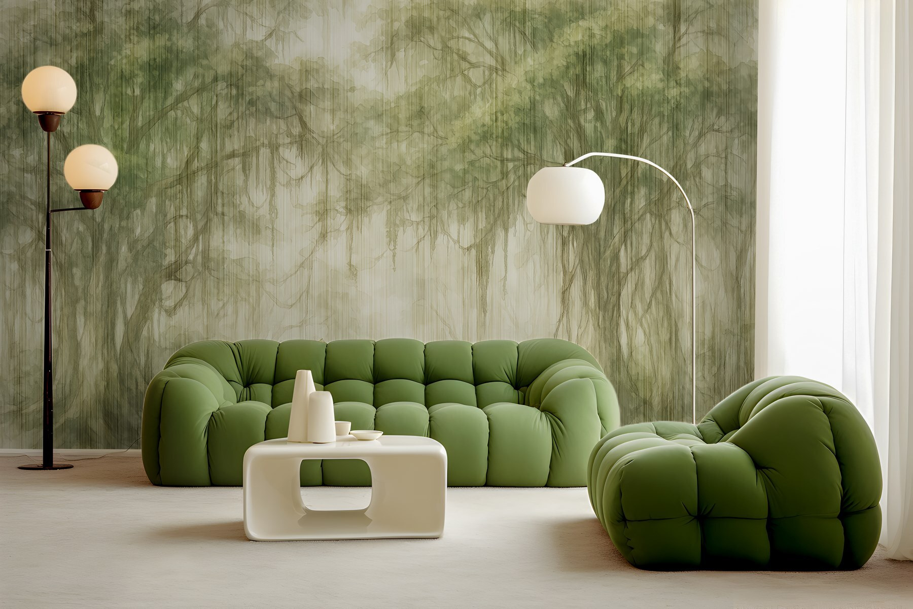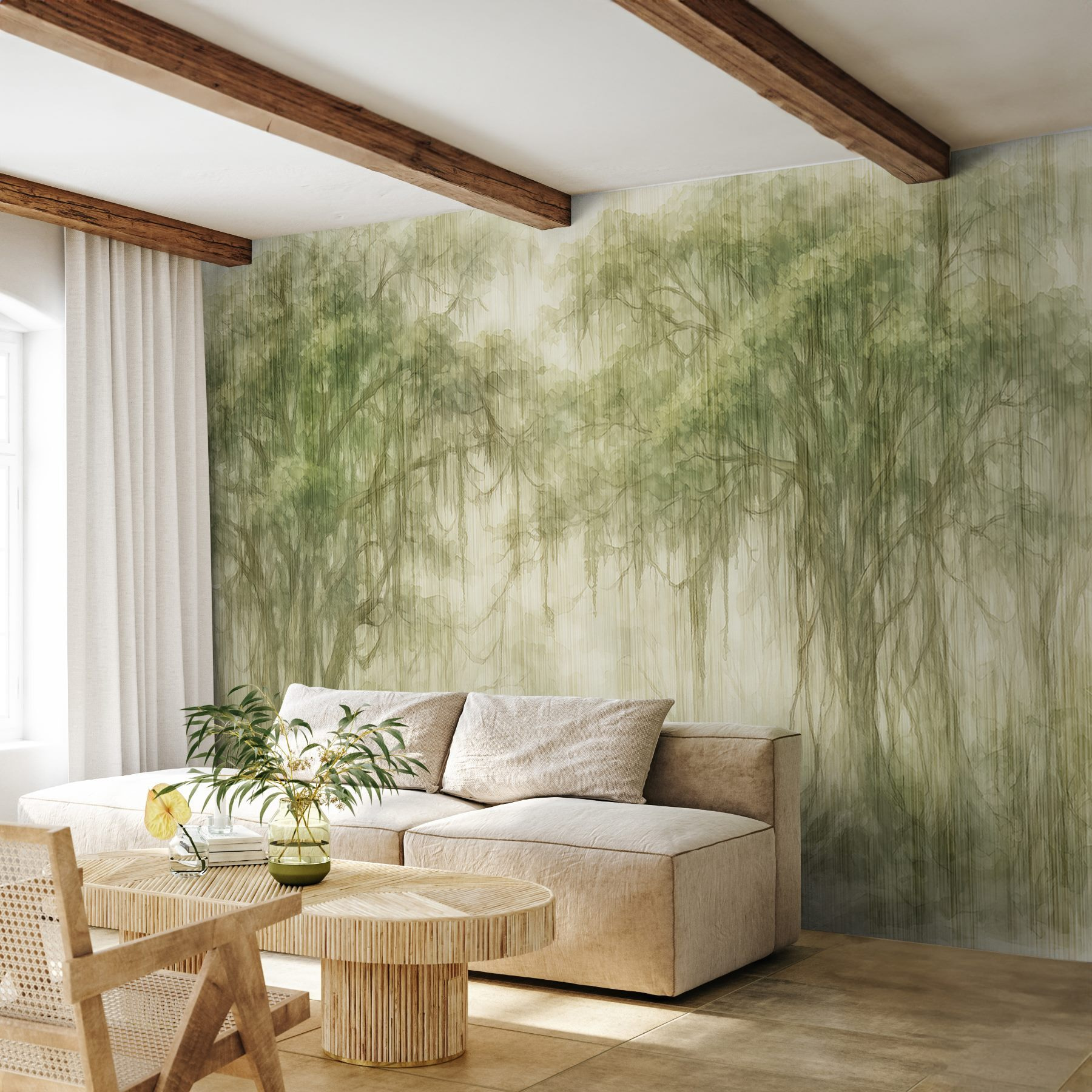 Mergulhe o seu espaço na tranquilidade com este encantador mural de parede de uma floresta enevoada. É como entrar num sonho onde as árvores sussurram segredos e o ar é denso de mistério. Imagine-se a beber o seu café da manhã, rodeado pelos tons suaves de verdes e castanhos, enquanto a luz do sol espreita através dos ramos enevoados. Este mural acrescenta um toque de calma da natureza, fazendo com que até os dias mais agitados pareçam um pouco mais lentos. Perfeito para uma sala de estar aconchegante ou um quarto sereno, convida a sonhar acordado e mantém-se perfeitamente incómodo. Quem não gostaria de ter um refúgio sereno mesmo em casa?